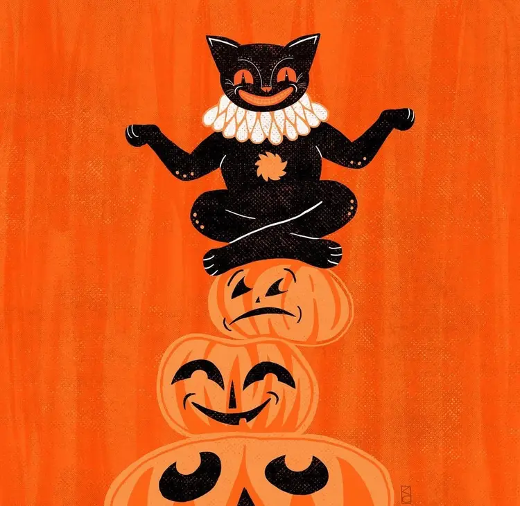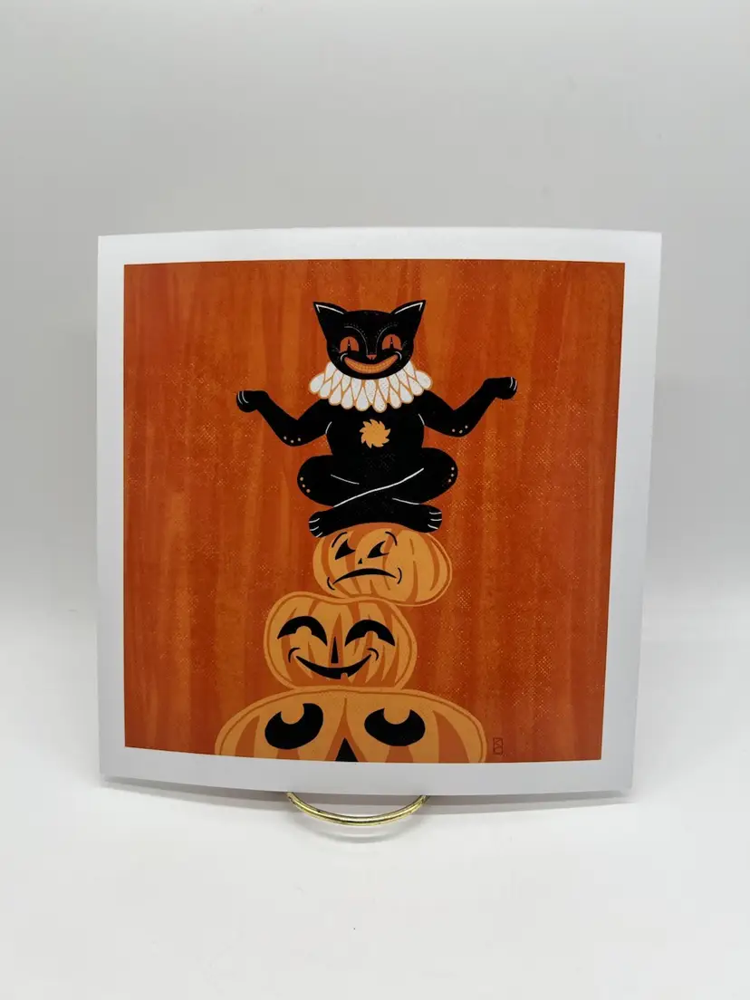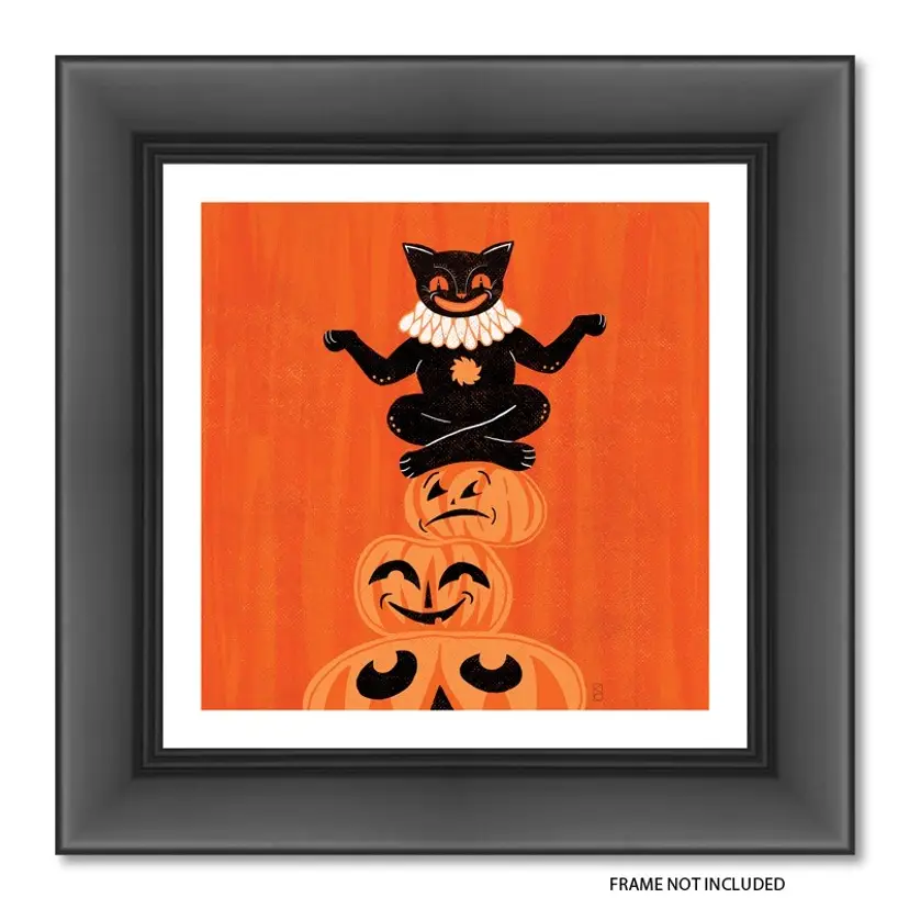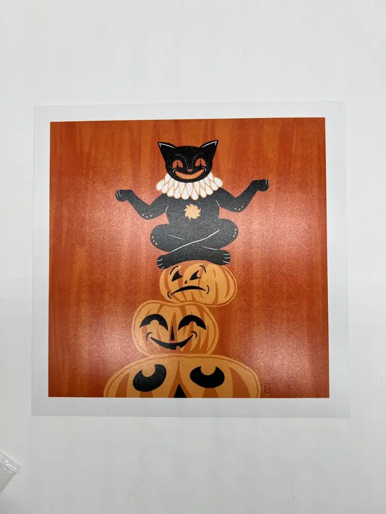 MADE BY ME: 8x8 Archival Print Of My Digital Artwork- “Happy Halloween ” Vintage Style Cat On Pumpkins - Halloween Or Every Day Wall Art. Great For Gallery Wall. Created On My Pad Using Procreate for Mabsdrawlloween daily prompt for Inktober on Instagram - NO AI USED