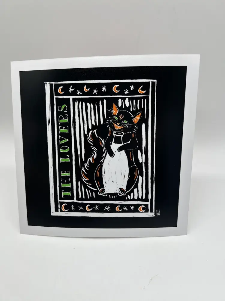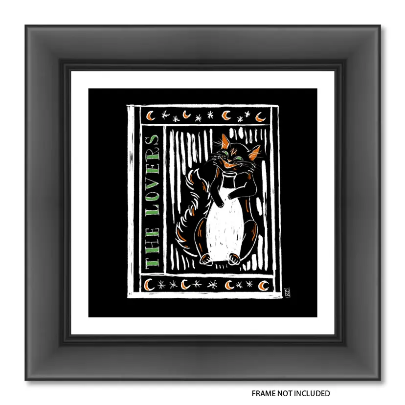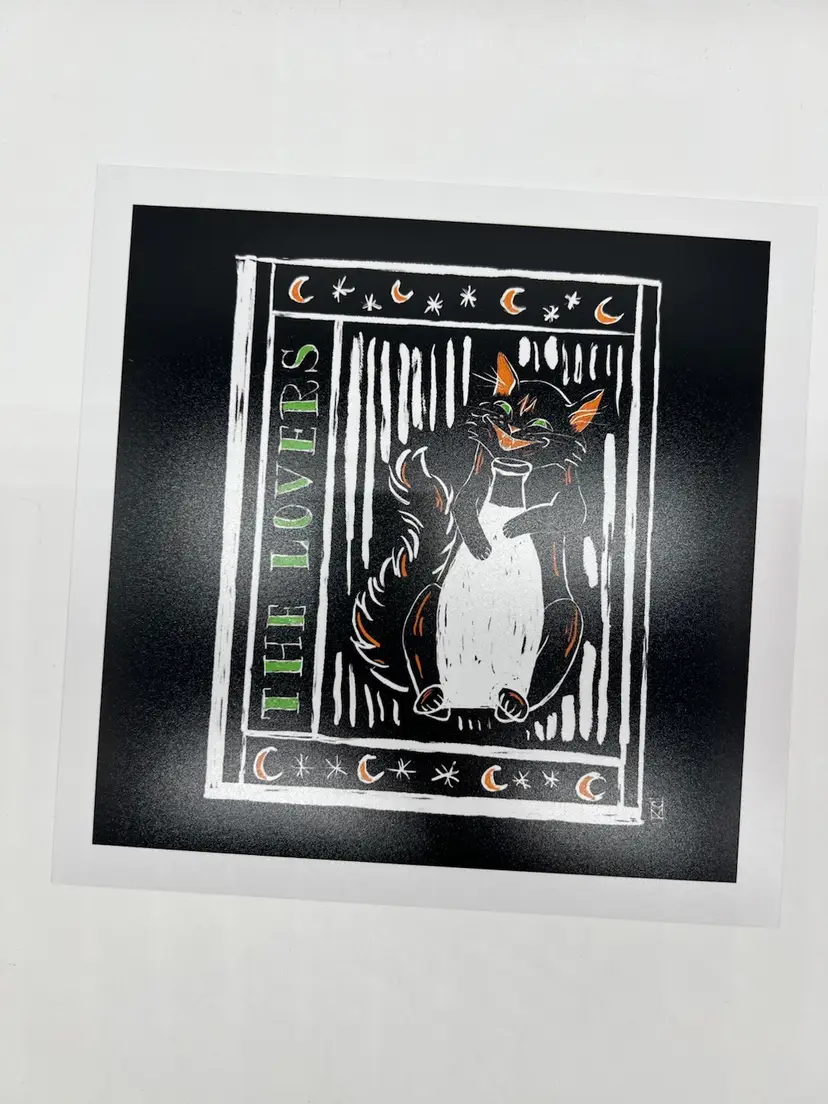 MADE BY ME: 8x8 Archival Print Of My Digital Artwork - “Tarot The Lovers” Cat on Tarot Card. Halloween Or Every Day Wall Art. Great For Gallery Wall. Created On My Pad Using Procreate for Mabsdrawlloween daily prompt for Inktober on Instagram - NO AI USED