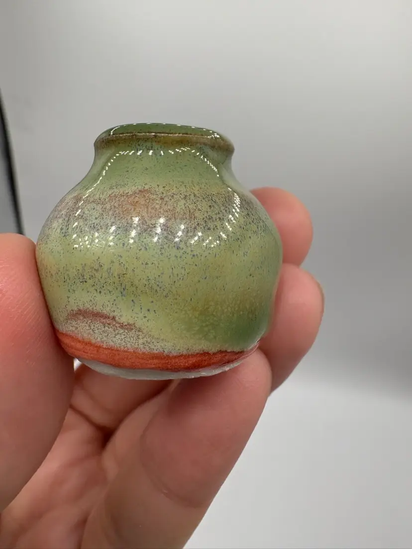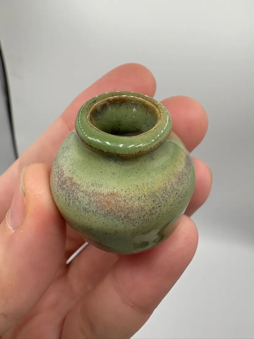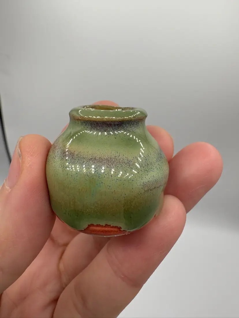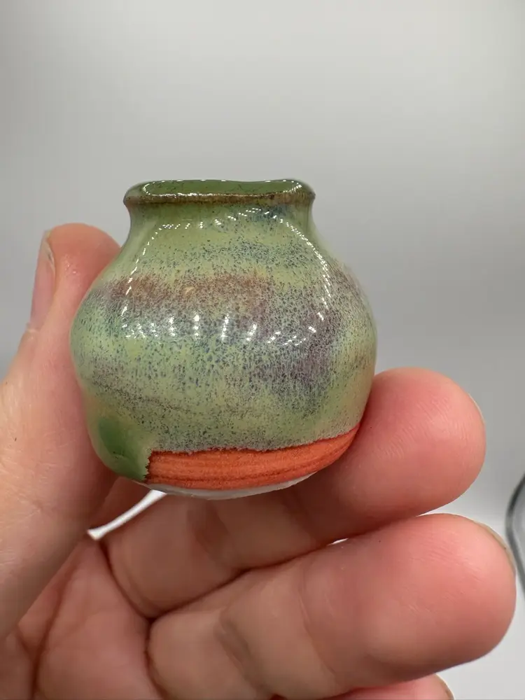 Made By Me - Green Drip Glaze Over Pink Mini Vase 1” Controlled Chaos Pottery