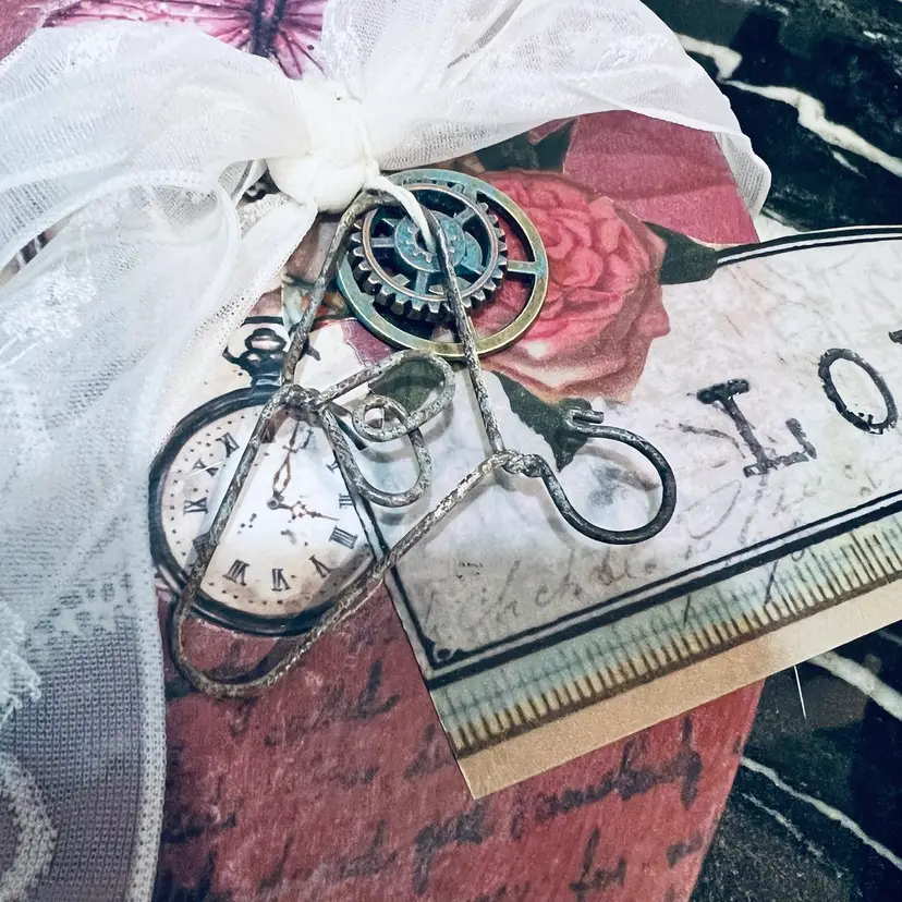 Hand painted by me Entirely put together by me Stamped tag Waxed and sealed Table decor Approx 6” across
