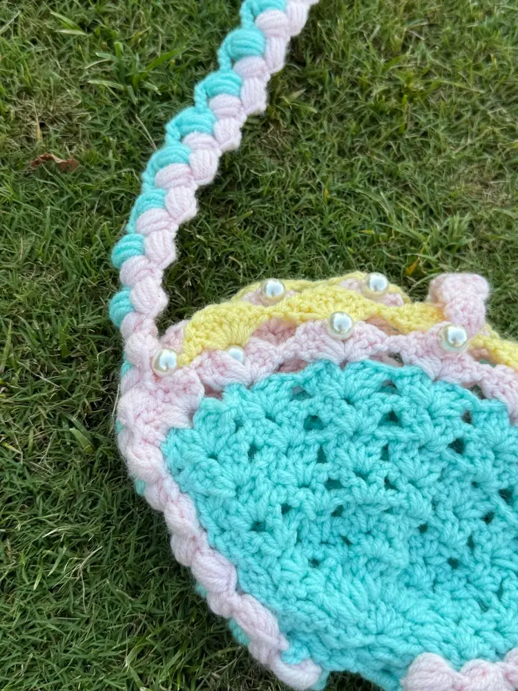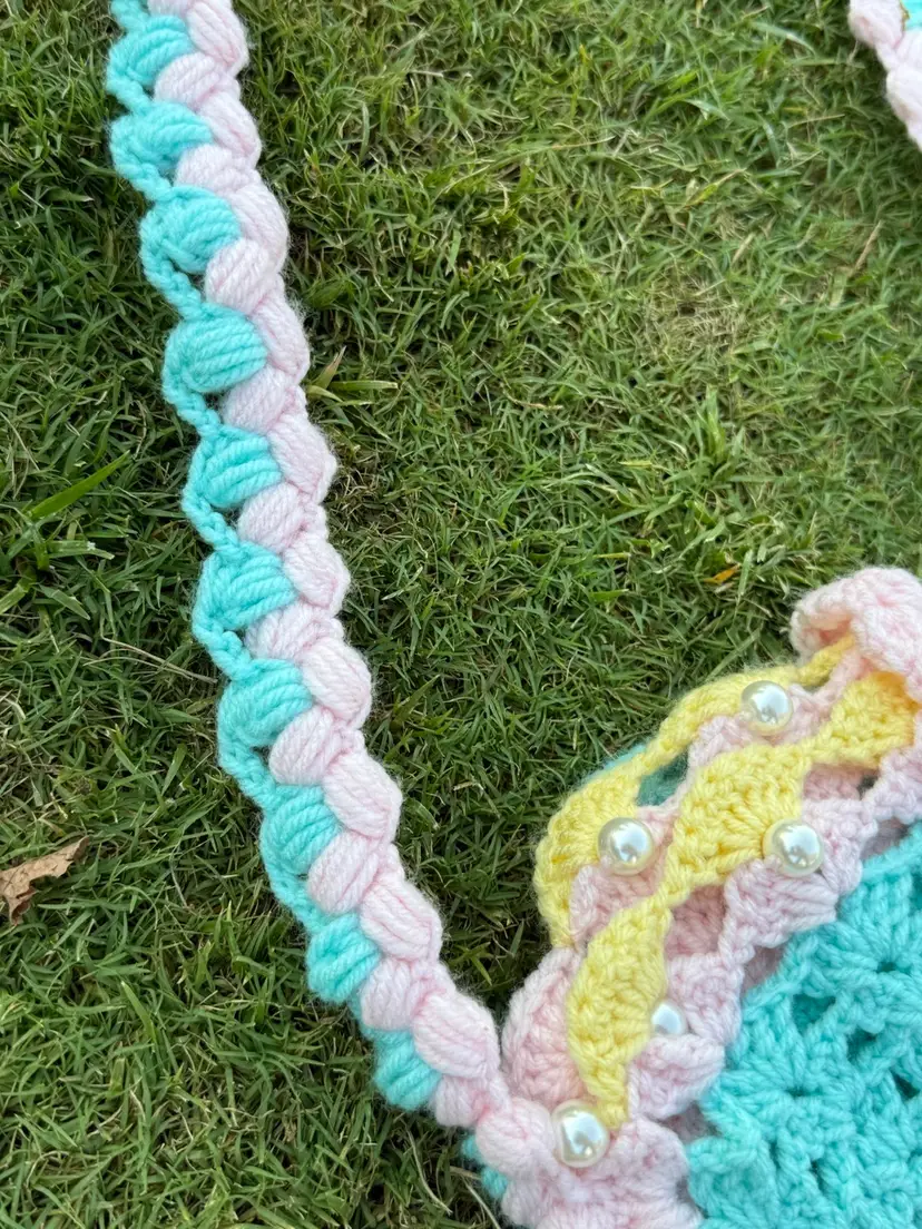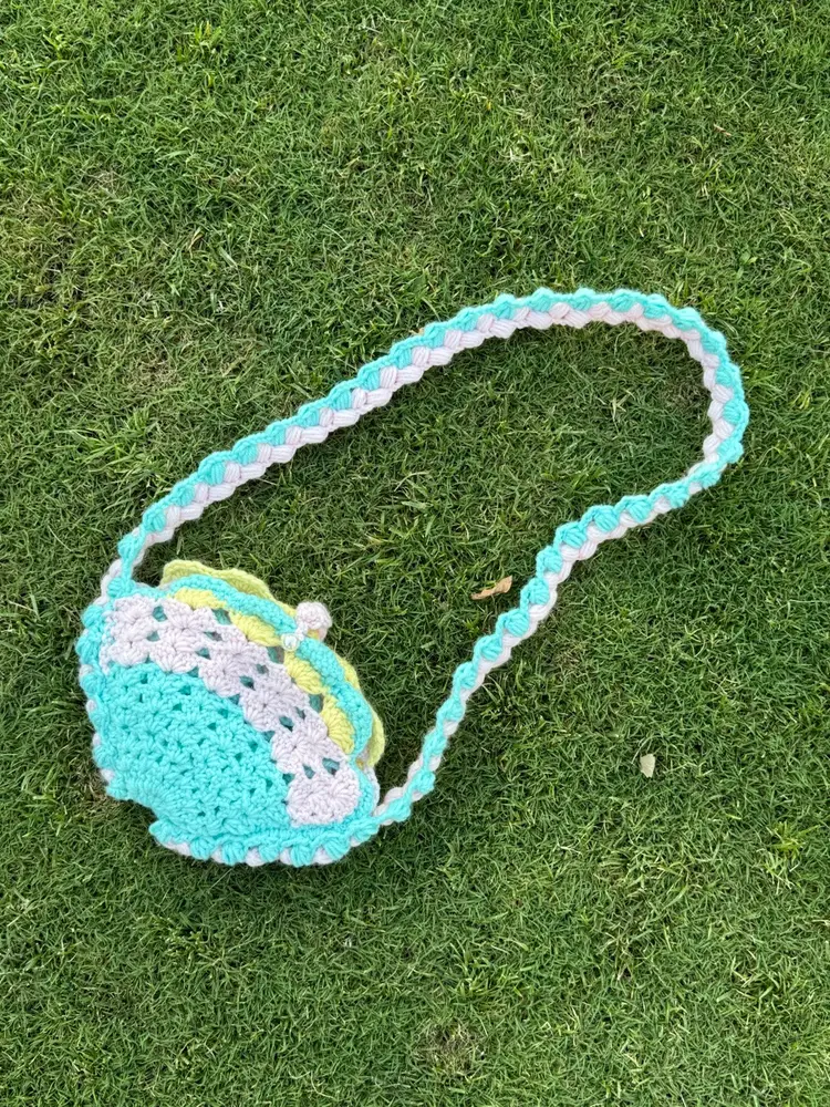 Hand made by yours truly. The strap js sized more for a girl, however, an adult could rock this bag too.