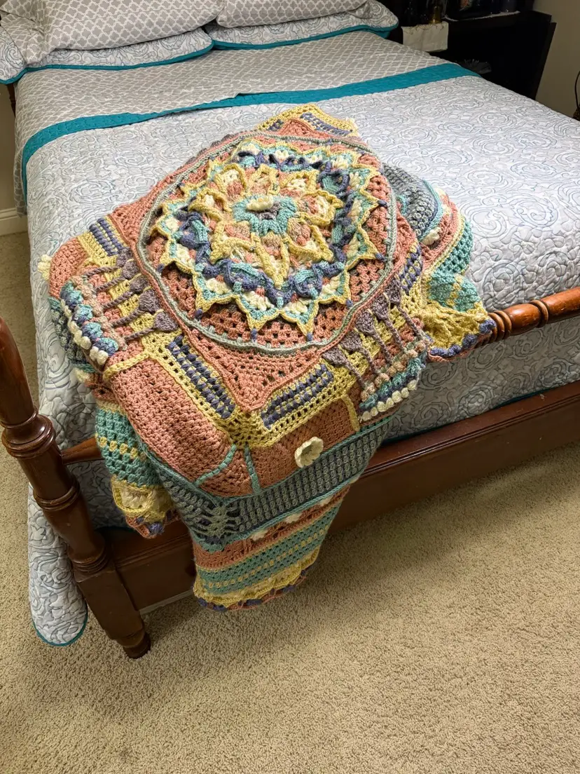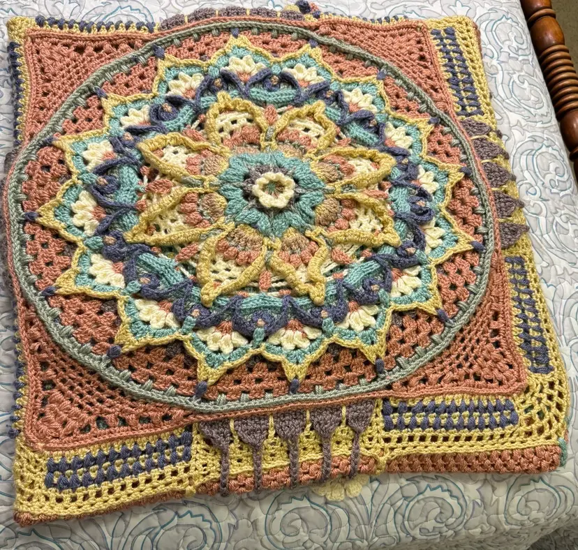 Photographed on a Queen bed. Measurements are approximately 60" x 60"