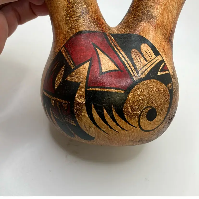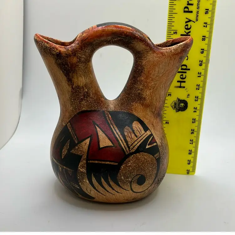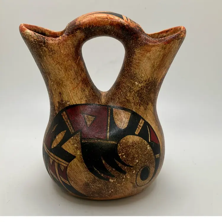 Good condition- no chips or cracks. Signed and stickered on bottom. Has the appearance of a distressed finish along with elephant (?) design on both sides. Open to offers!