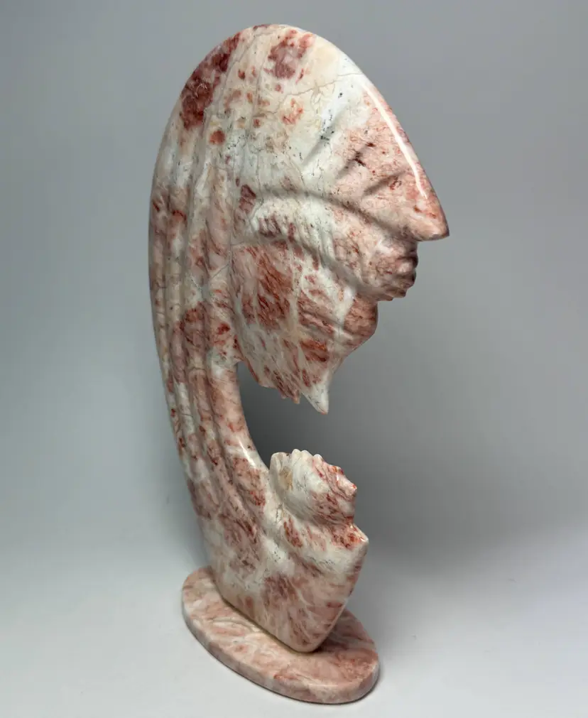 Madonna & Child Mother & Child 10.25" Pink Blush Marble Sculpture Abstract Figurine. Great condition. No chips, no cracks. Unsigned.