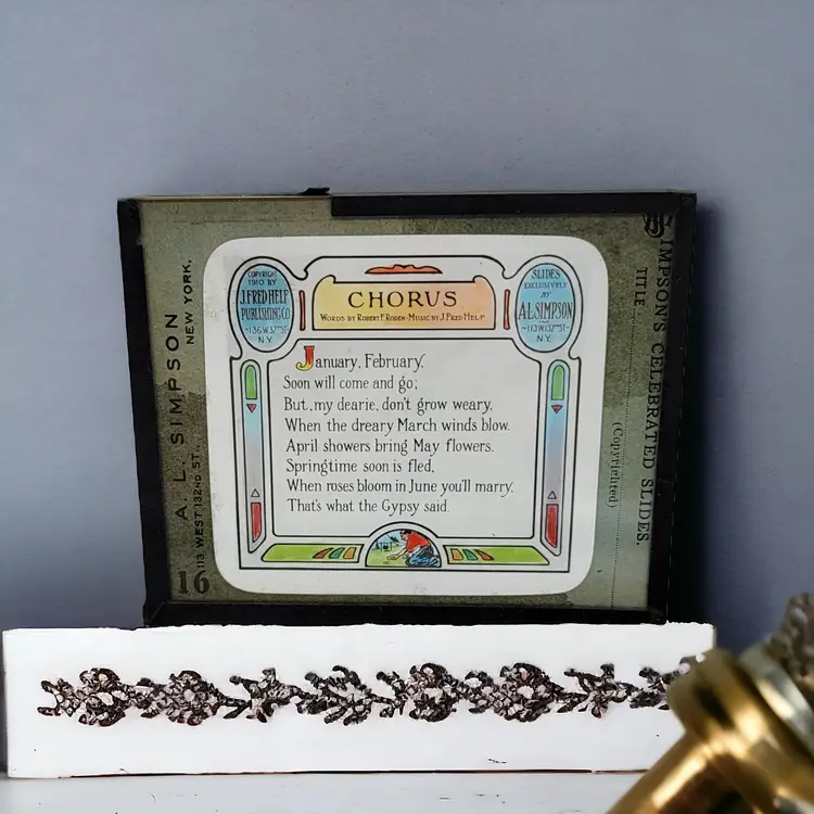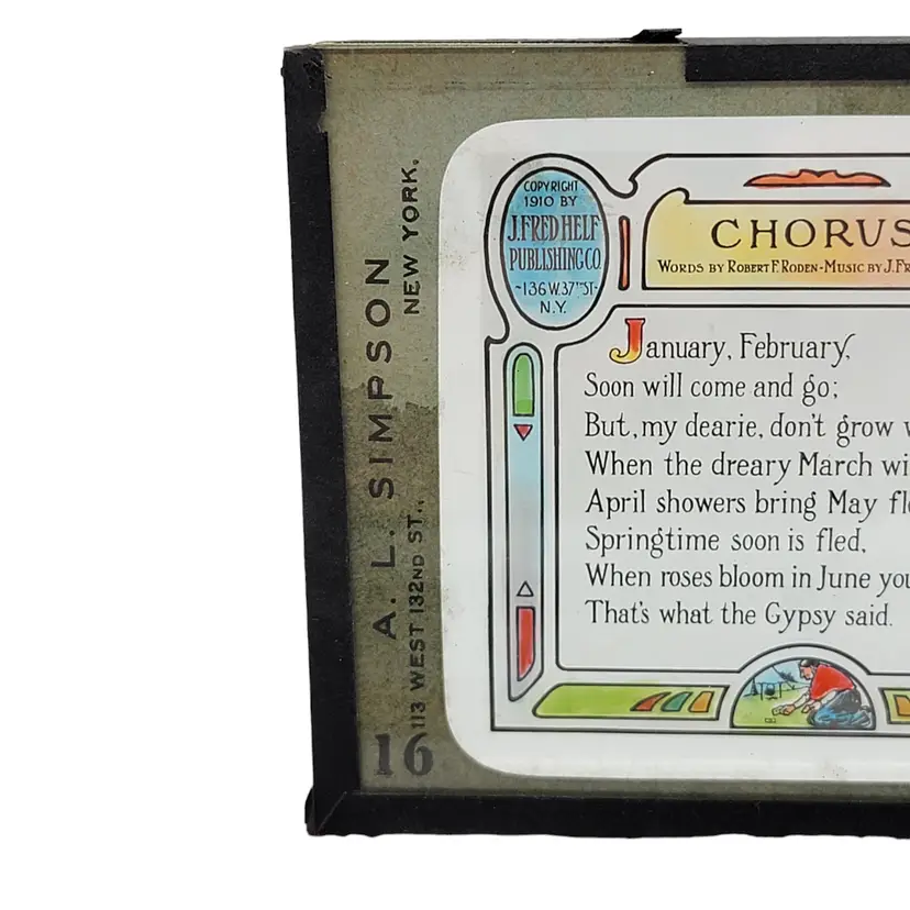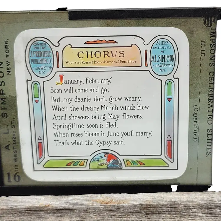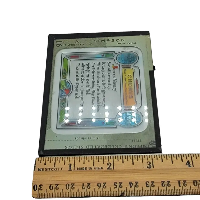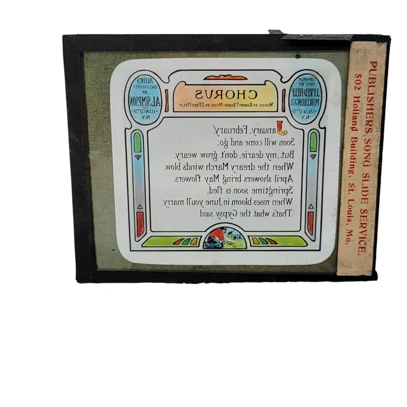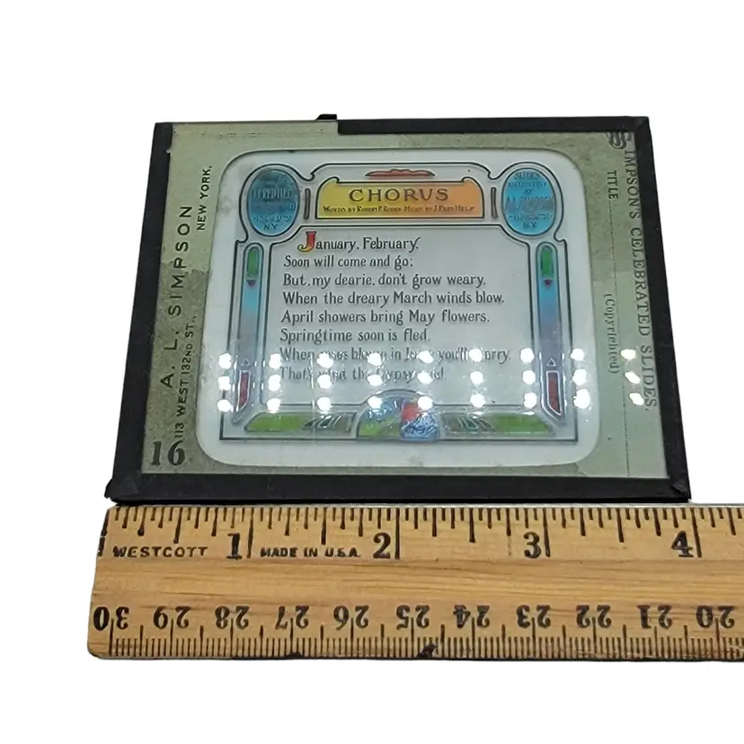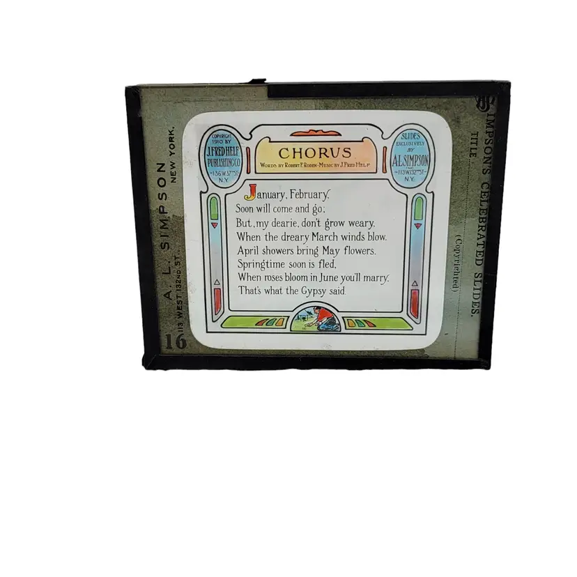 This is a magic lantern slide from A.L Simpson of a verse from Chorus by Robert Roden and J. Fred Help.