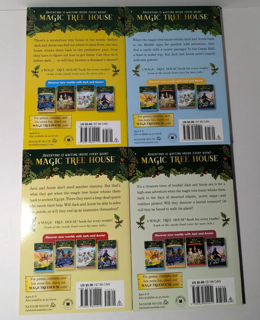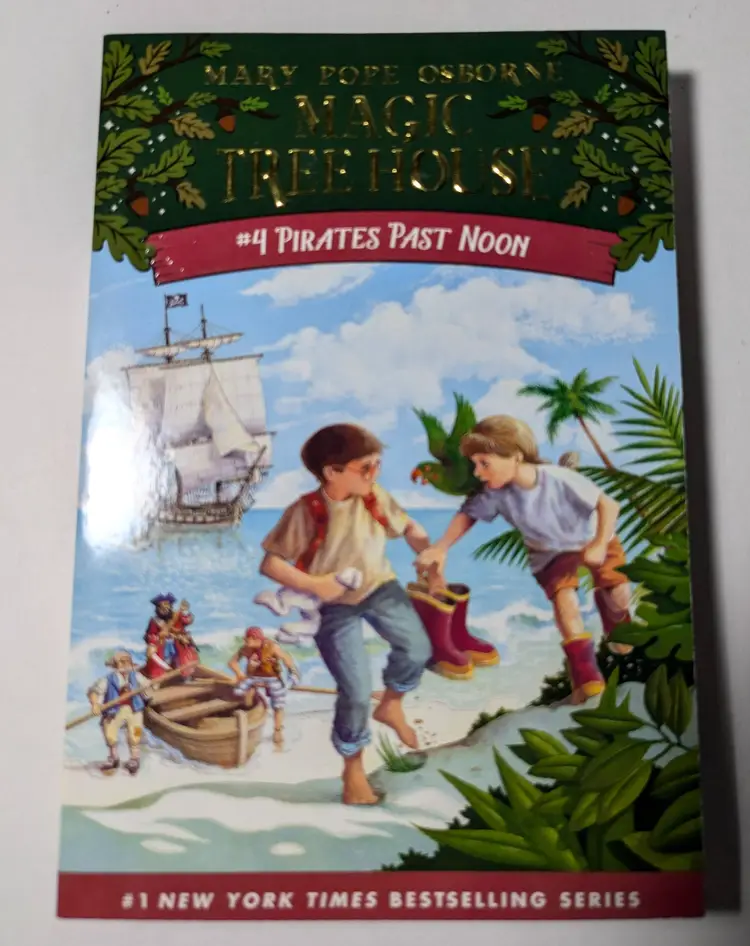 #4 Pirates Past Noon It’s a treasure trove of trouble! Jack and Annie are in for a high-seas adventure when the magic tree house whisks them back to the days of deserted islands, secret maps—and ruthless pirates! Will they discover a buried treasure? Or will they be forced to walk the plank?