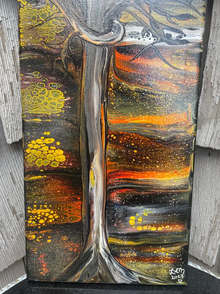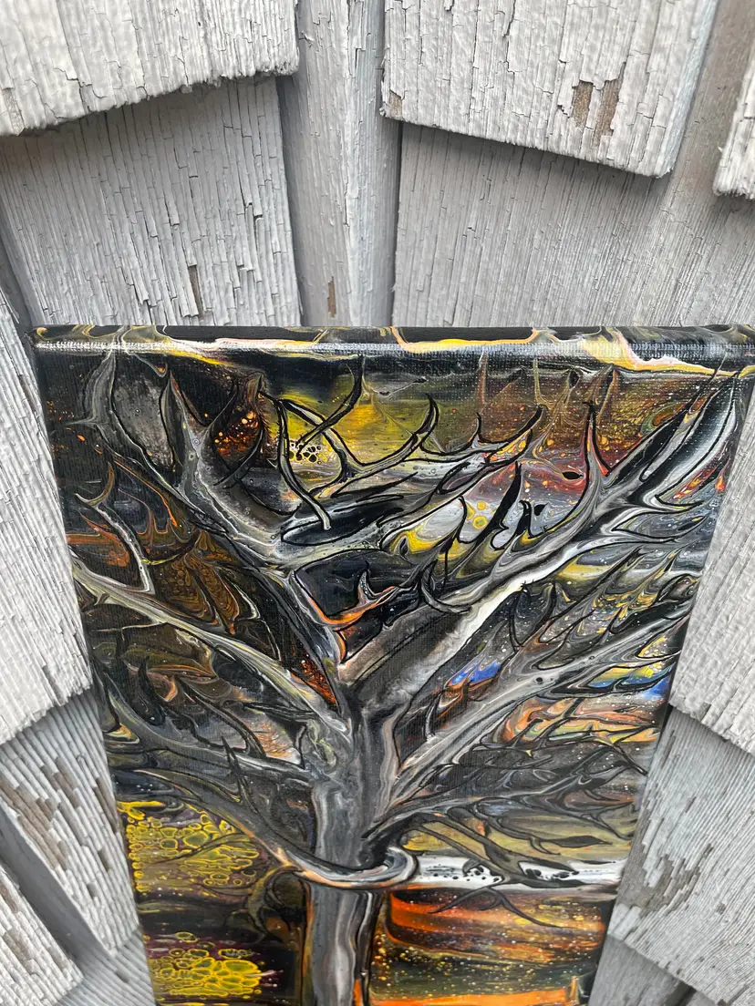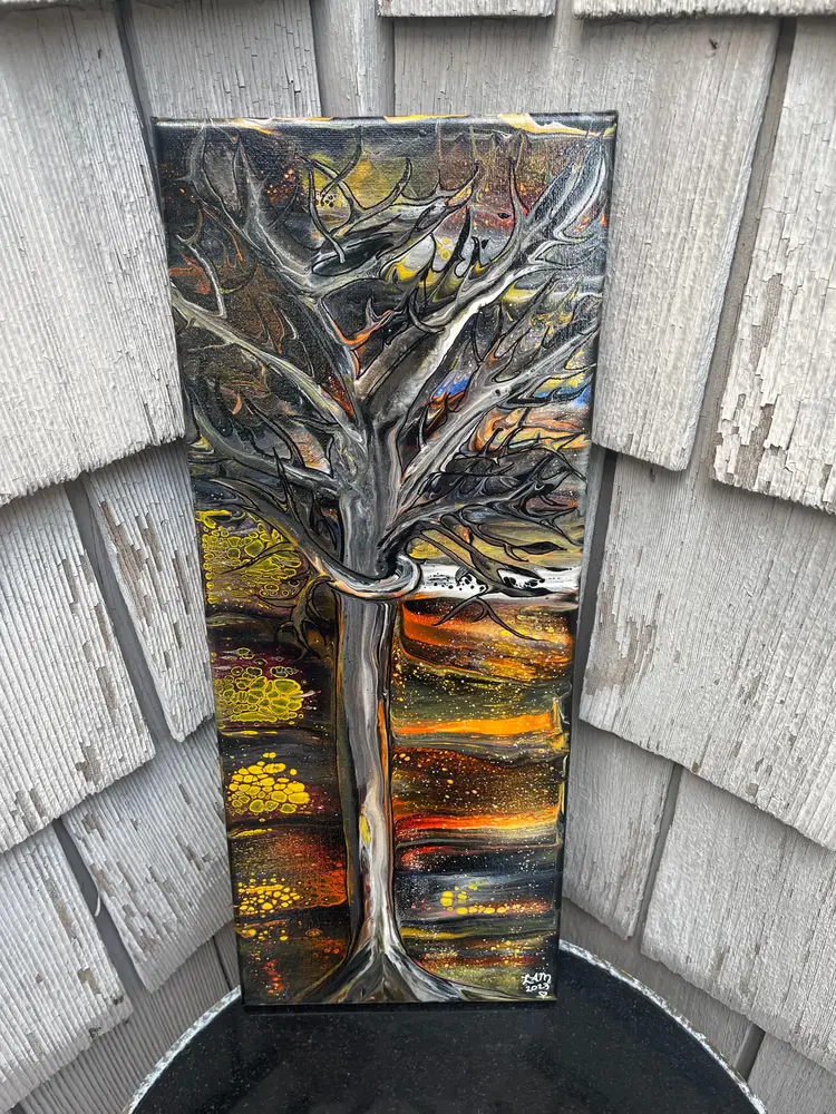 Magical Tree of Life Forest Acrylic on Canvas Painting Signed LAM 2023 8" x 20". The painting is signed by me the artist.