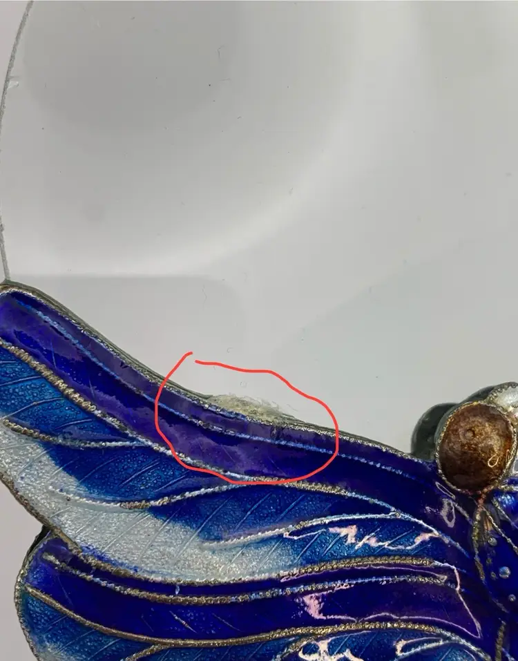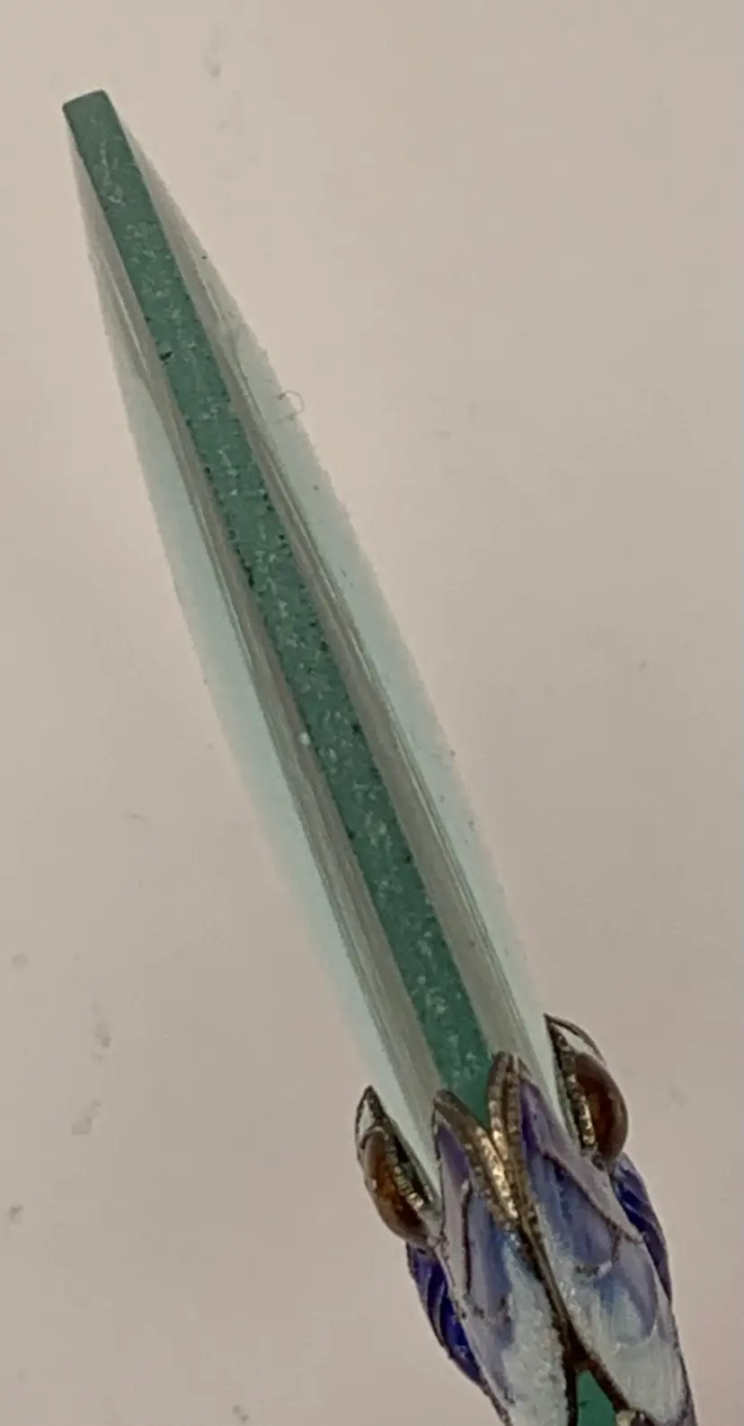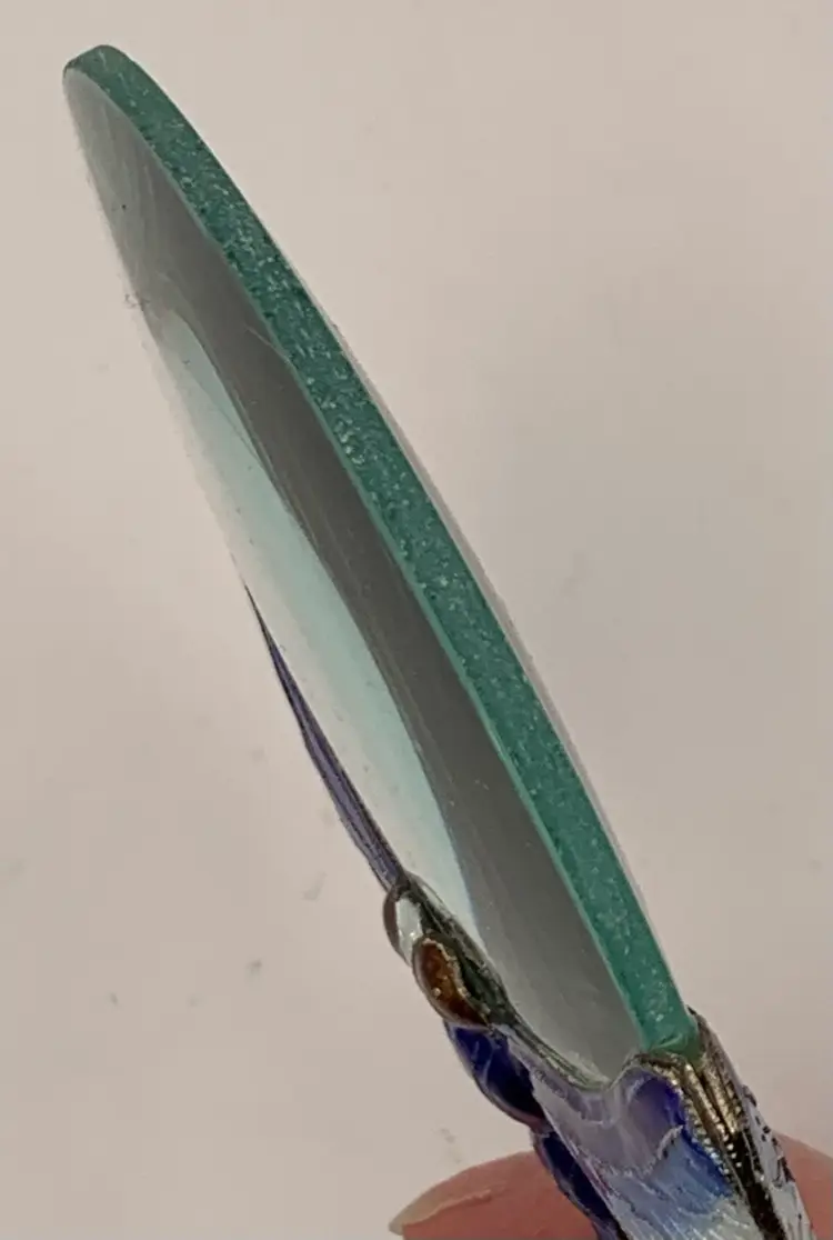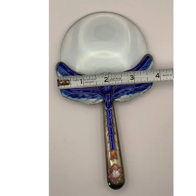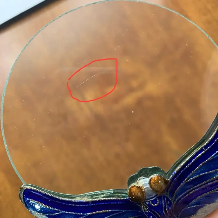 The glass does have a couple small marks/scratch. There is a little extra glue where handle was attached when it was made. See photos for details and measurements. And photo of magnification. Thank you for checking out my listings