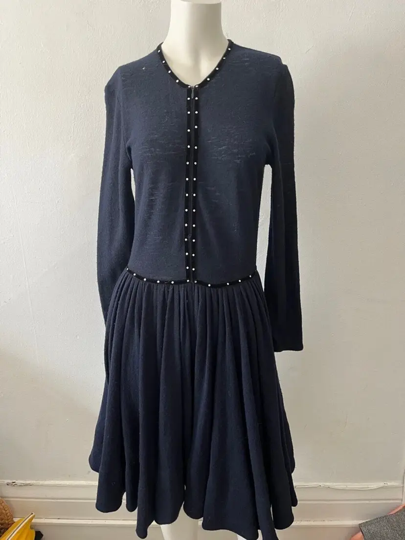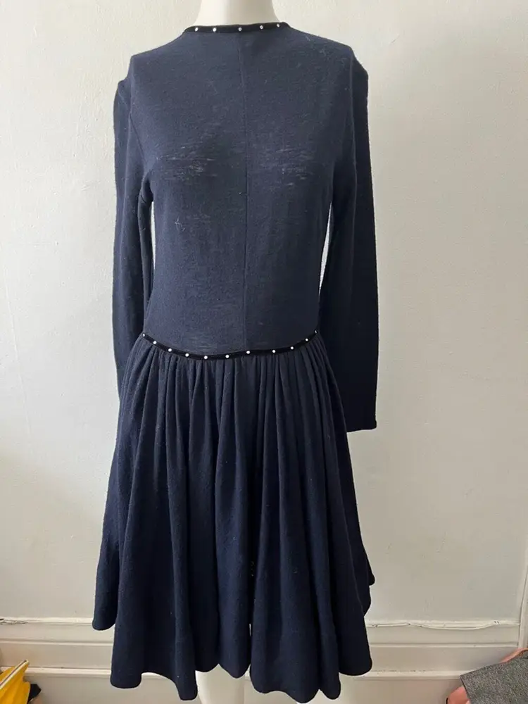 Brand: Maje Size: 2 Style: A-Line Size Type: Regular Dress Length: Midi Color: navy Department: Women