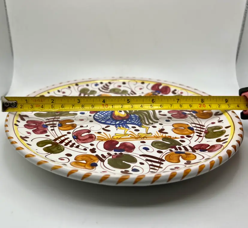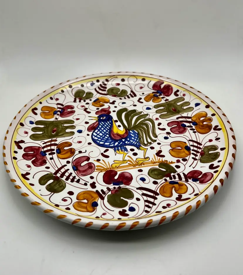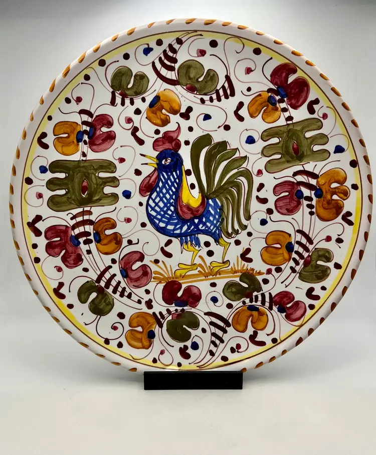 Italian pottery hand-painted classic design with blue rooster 9” plate.