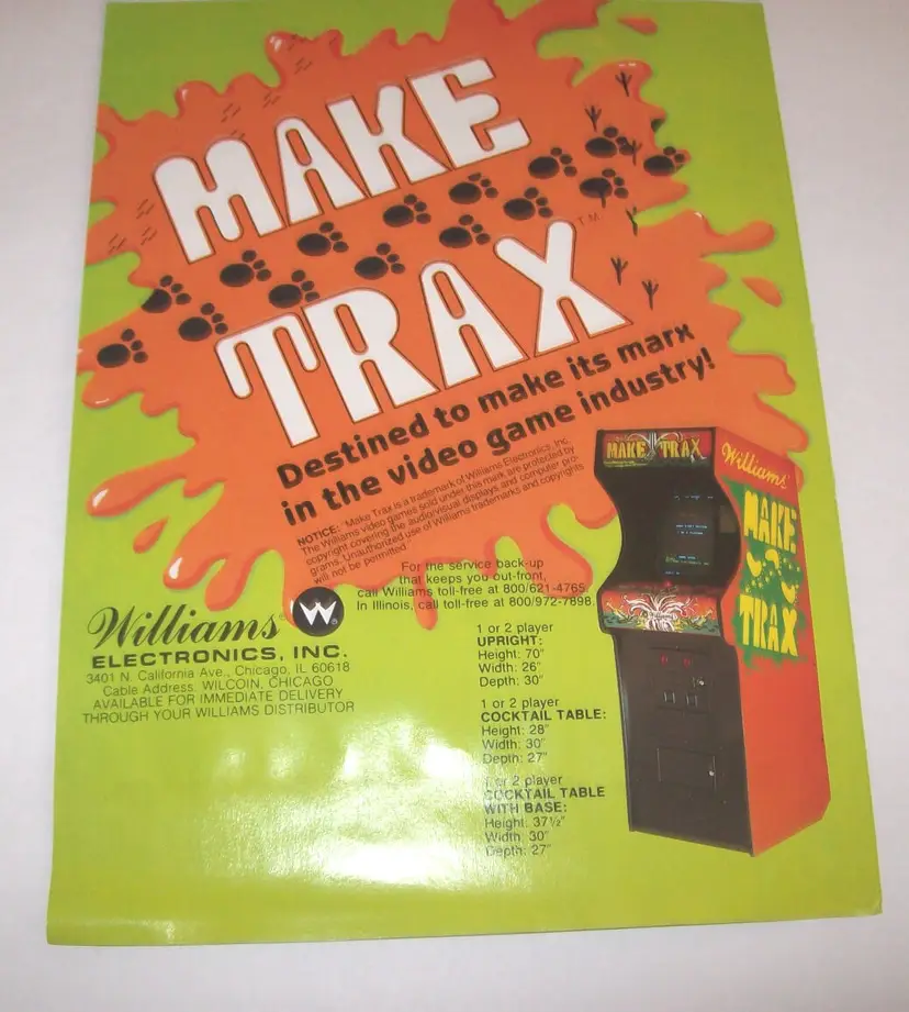 MAKE TRAX LARGE 20" X 13" VIDEO ARCADE MAGAZINE PULL OUT FLYER