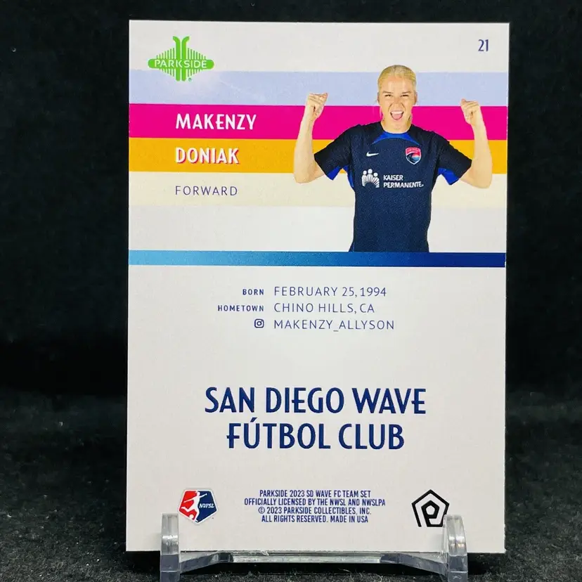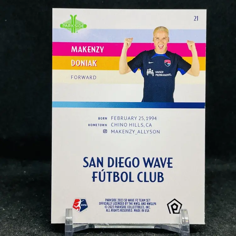Card Size: Standard League: National Women's Soccer League (NWSL) Autographed: No Product: Single Year Manufactured: 2023 Player/Athlete: Makenzy Doniak Type: Sports Trading Card Sport: Soccer Parallel/Variety: Limited Manufacturer: Parkside Team: USWNT Card Number: 26 Season: 2023 Country/Region of Manufacture: United States