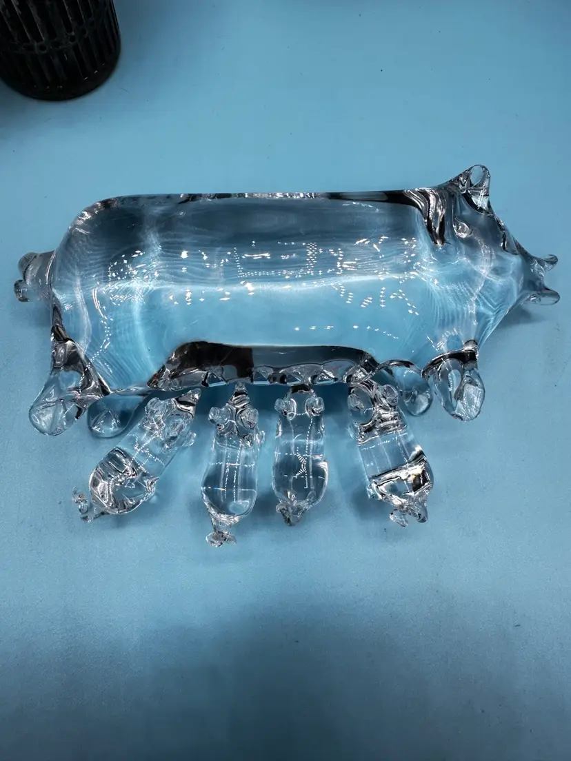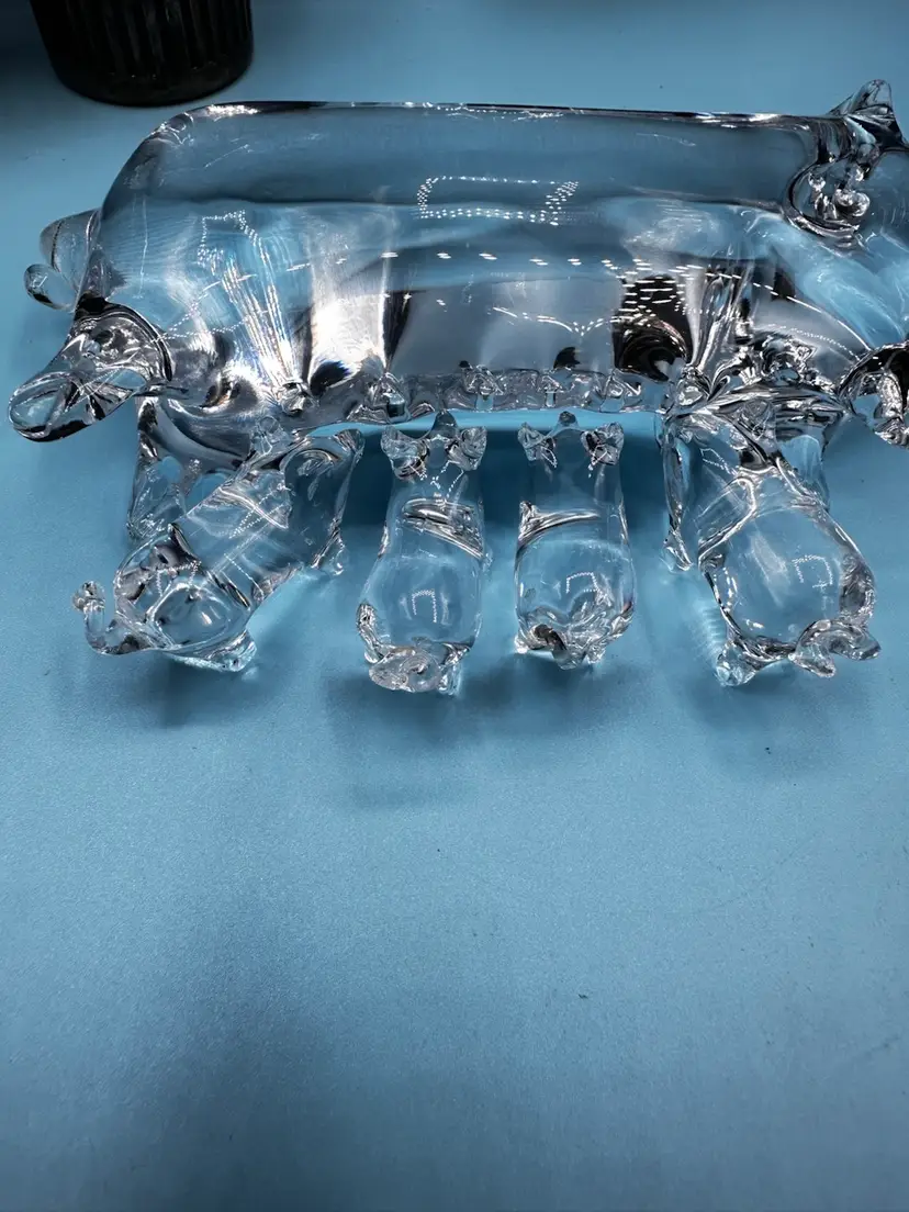 Mama Pig Sow Art Glass Paperweight Figurine with 4 baby piglets. Mama pig is approx 6”L and piglets are approximately 1.5 “. No chips or cracks