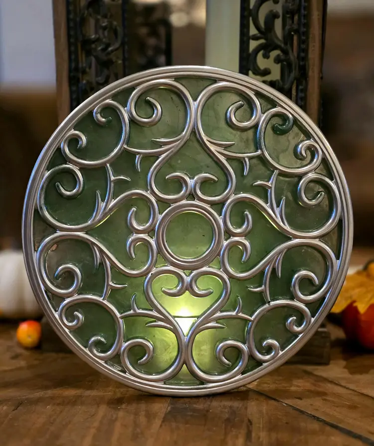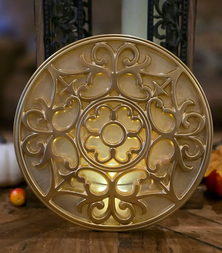 Each item is handcrafted with your desired colors. Pick a background color and a metallic color (gold, silver or rose gold). Items measure 8.5". They have a glass tea light holder attached to the rear of the decoration. Comes with tea light and battery. Please indicate which design you'd like in notes.