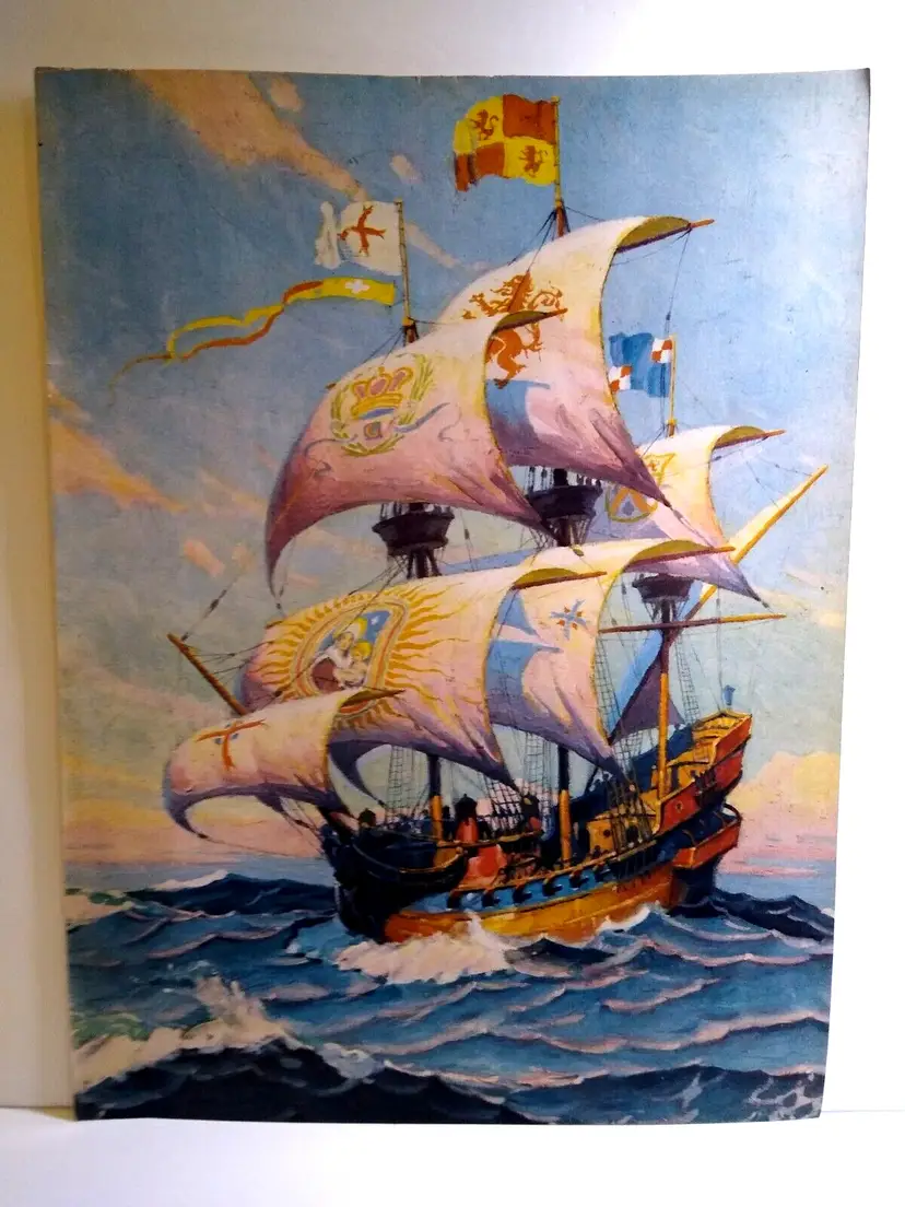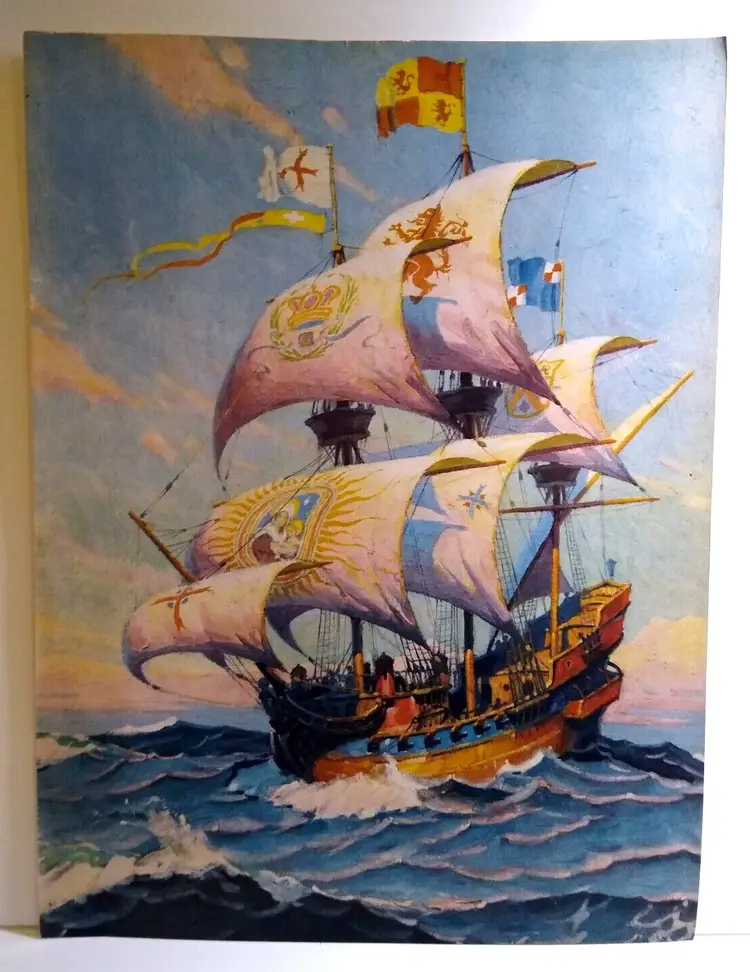 Features: Lithograph Region of Origin: Unknown Item Width: 12 in Production Technique: Lithography Item Length: 16 in Item Height: 16 in Subject: Ships Size: Medium Material: Paper Culture: Unknown Time Period Produced: 1925-1949 Framing: Unframed Artist: Unsigned Year of Production: 1930 Original/Licensed Reprint: Original Style: Illustration Art Signed: No Unit of Sale: Single Piece Theme: Art, Nautical Type: Print
