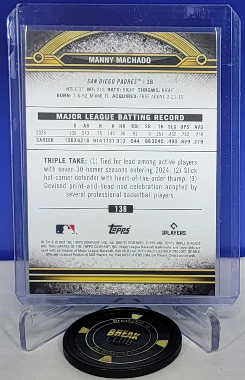 Manny Machado 2024 Topps Triple Threads No.138 Onyx /50 San Diego Padres