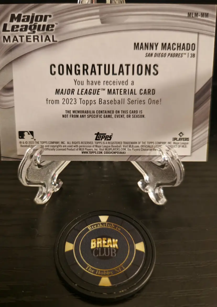 2023 Topps Series 1 MLB Material Relic Black Manny Machado Padres