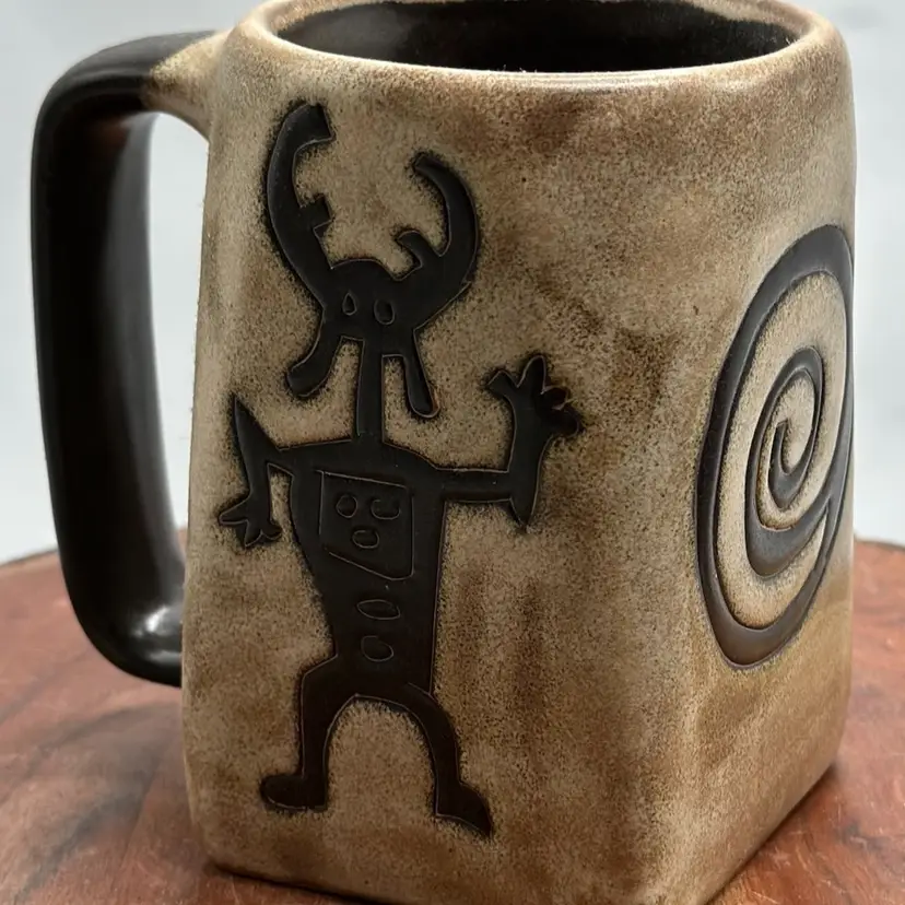 Mara Pottery Mexico Hand Crafted Mexican Art Pottery Petroglyph Southwest Coffee Mug