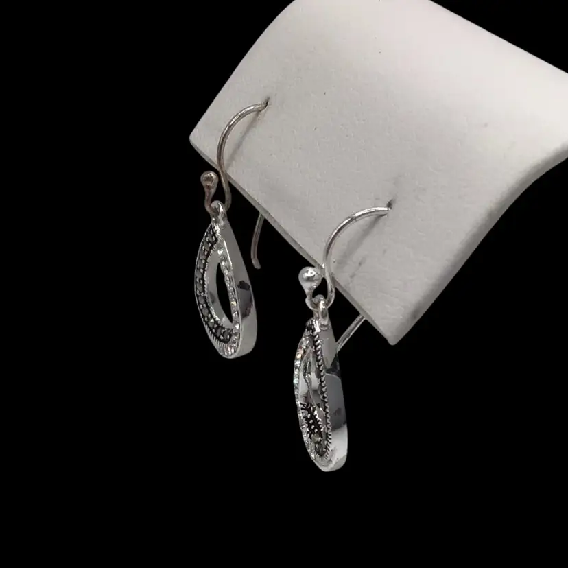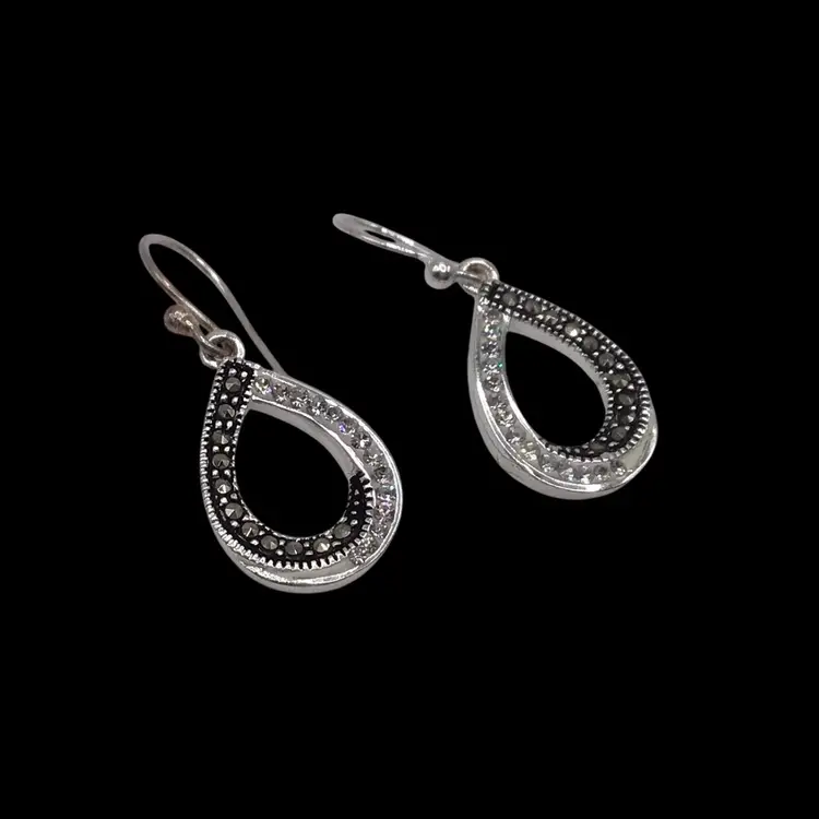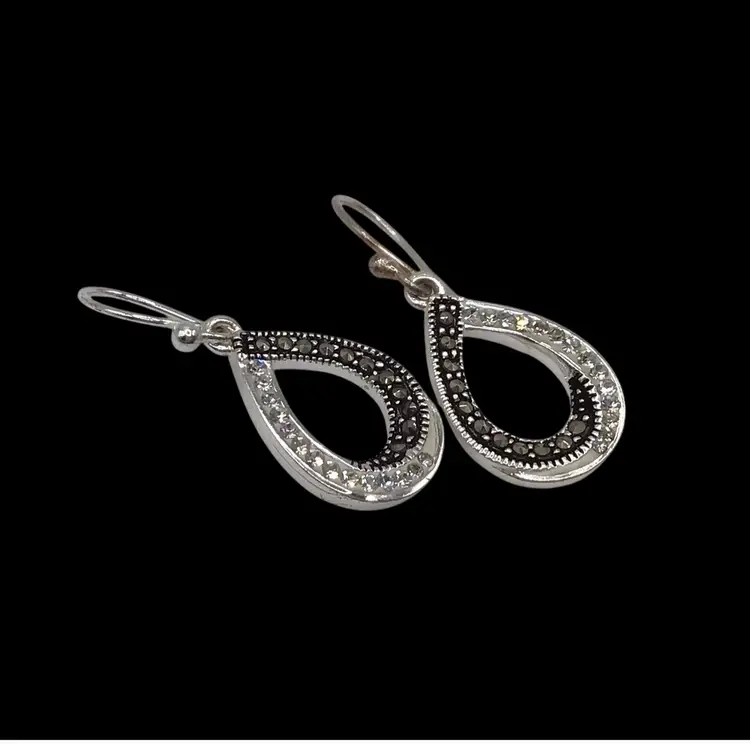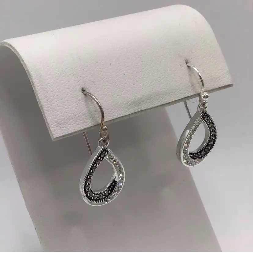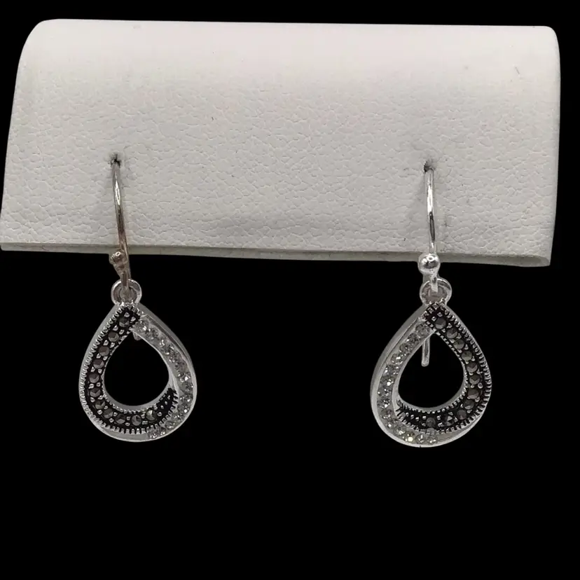 Marcasite & clear rhinestone tear drop shaped silver tone. Signed LA. #033