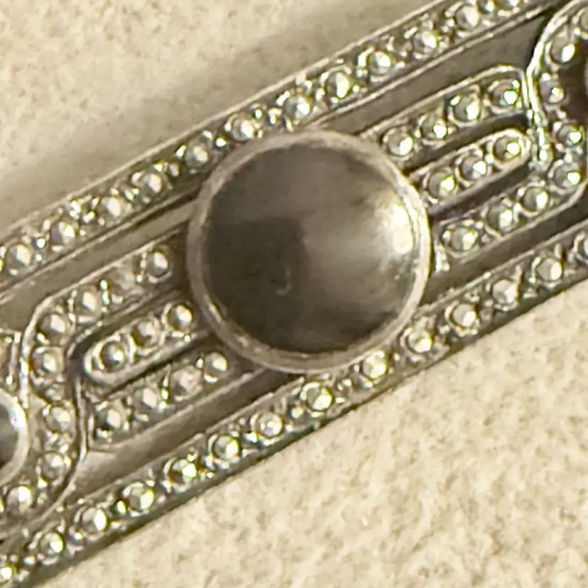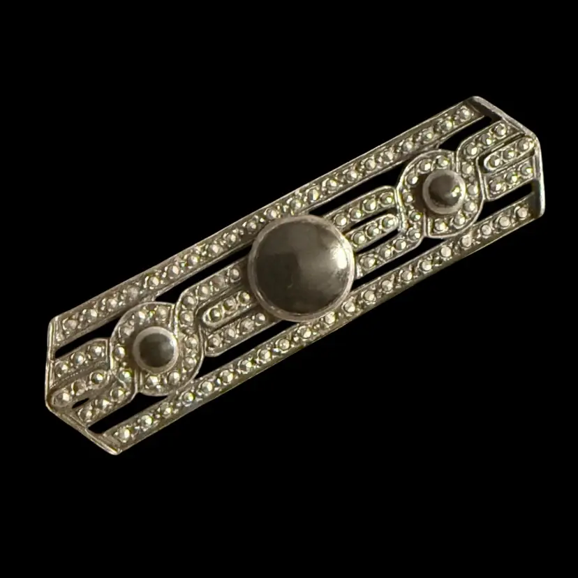 Marchasite And Onyx 925 Sterling Silver Pendant Brooch