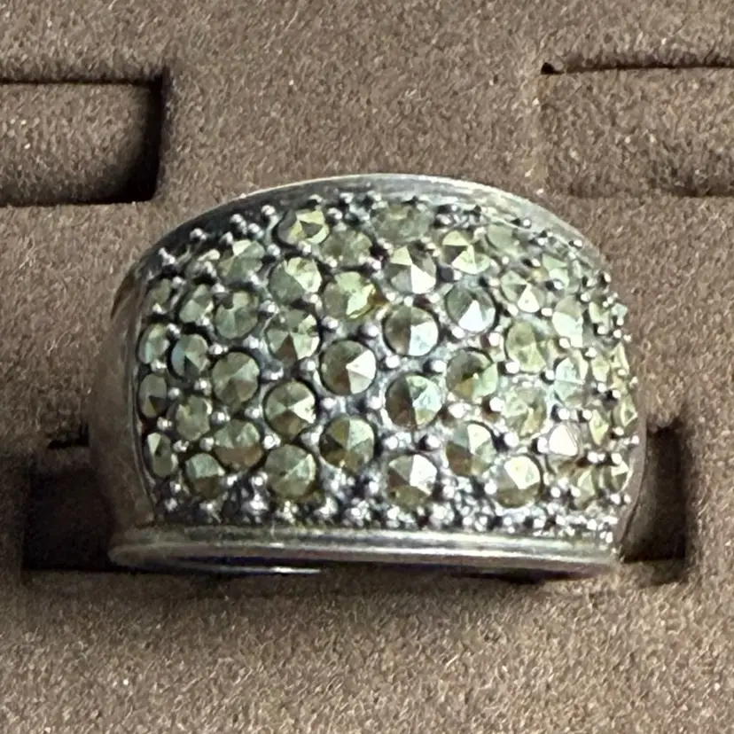 Marchasite Domed Wide Band 925 Sterling Silver Ring Size 7