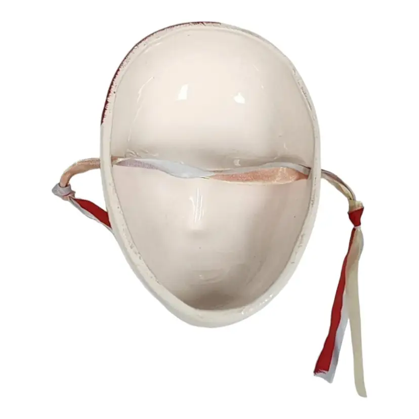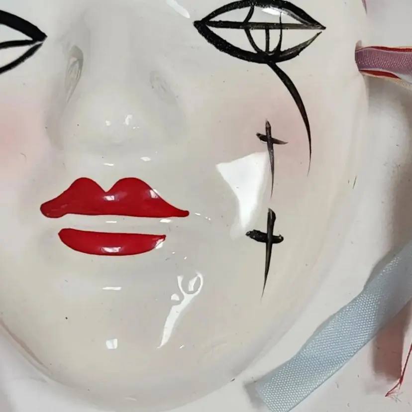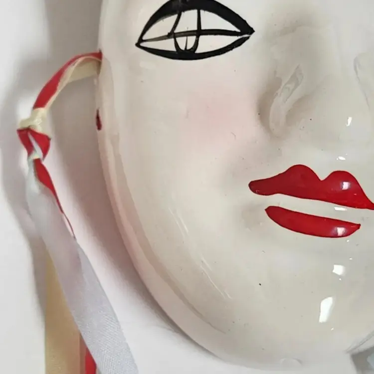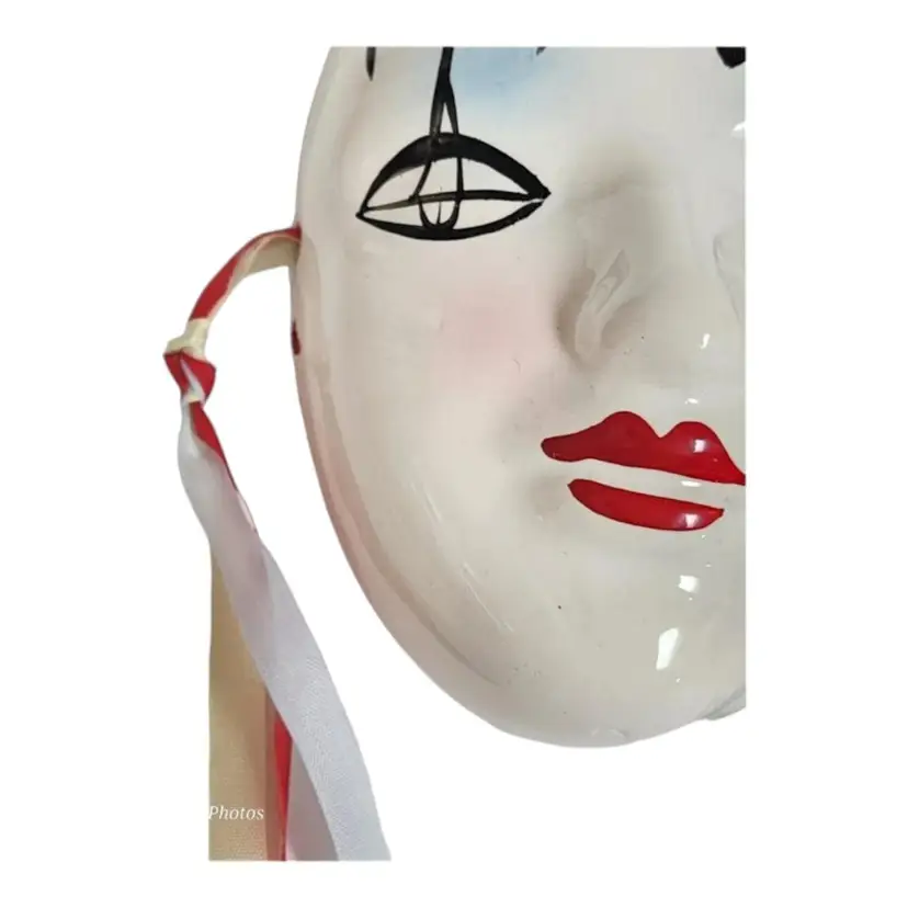 Vintage Mardi Gras About Face Glazed Ceramic Mask Wall Clay Art Dive into the vibrant spirit of Mardi Gras with this exquisite vintage 'About Face' glazed ceramic mask by Clay Art. This wall piece encapsulates the essence of celebration, mystery, and tradition synonymous with the iconic festival. Meticulously handcrafted, the mask showcases intricate detailing, vivid colors, and a lustrous glaze that accentuates its design features. It's not just a mask but a piece of art that serves as a conversation starter and evokes the rich history of Mardi Gras celebrations. Whether you're an art enthusiast, a Mardi Gras devotee, or a collector of unique wall pieces, this ceramic masterpiece promises to be a striking addition to your collection or décor Pre-owned in "Like New" condition