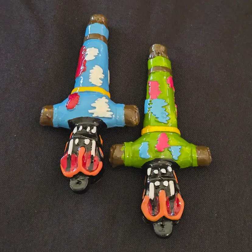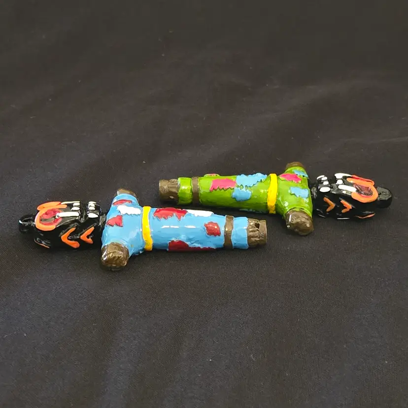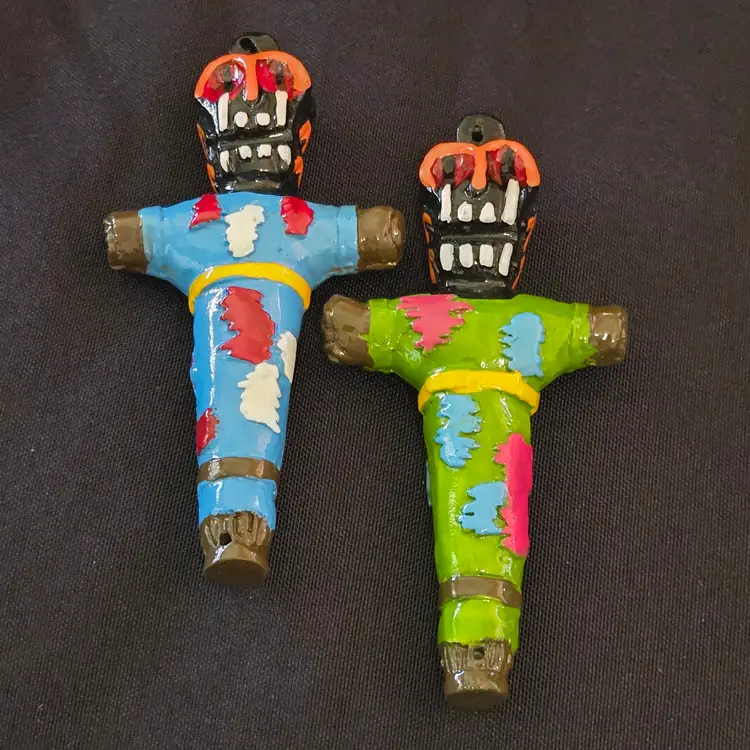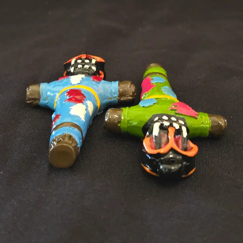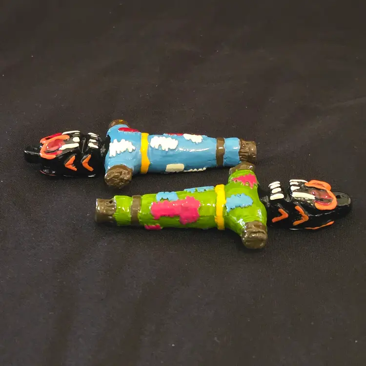 Mardi Gras Voodoo Dolls Figurines (2) PGG For Necklace Mojo Magic Spells Handpainted & Unbranded. Not sure what it is made of.