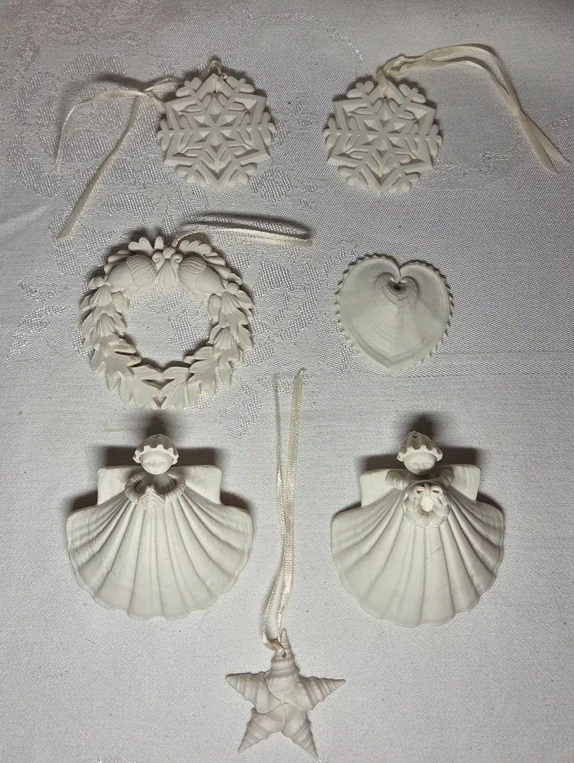 Margaret Furlong Shell Angel Christmas Ornaments Lot 7 1980s Snowflakes Star