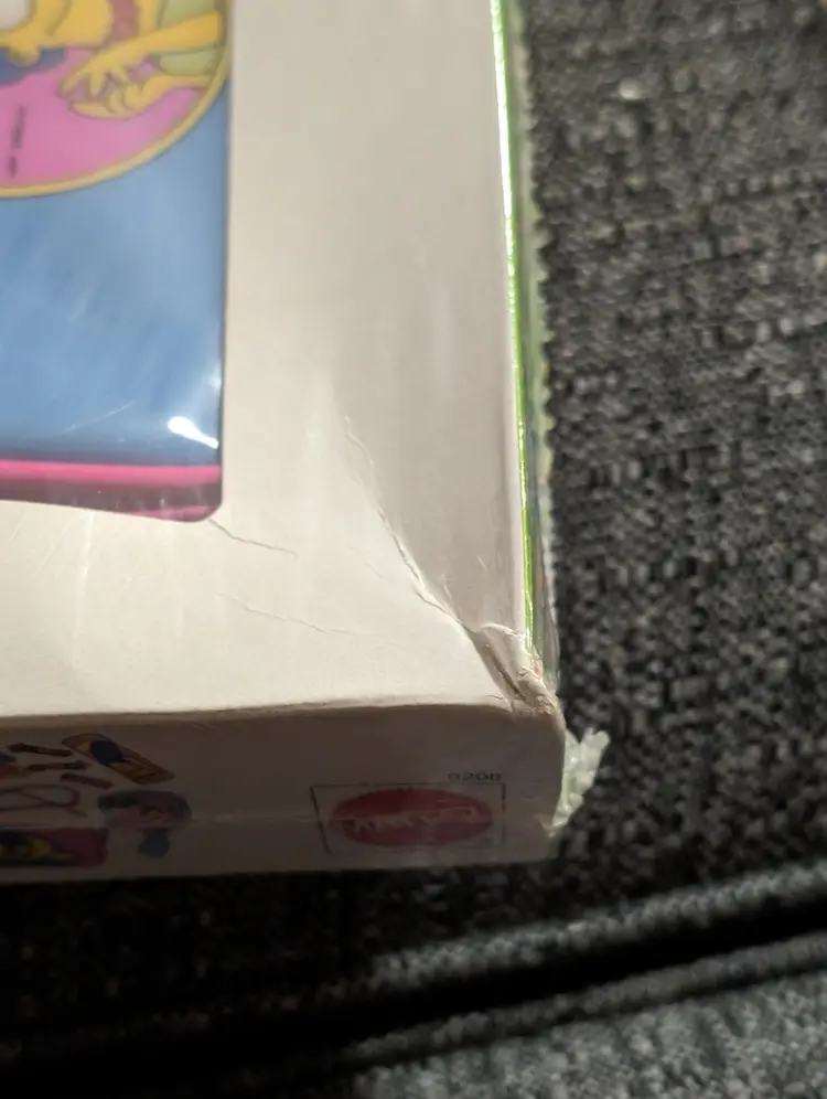 The box has its fair share of flaws, I've done my best to capture them all (see photos). When placed on display such flaws don't stand AS much if looking at it straight on. The bright colours alone and wacky old school designs really pop and take the focus away from those negative areas. Box has never been opened and was wrapped in a protective plastic by previous owner.