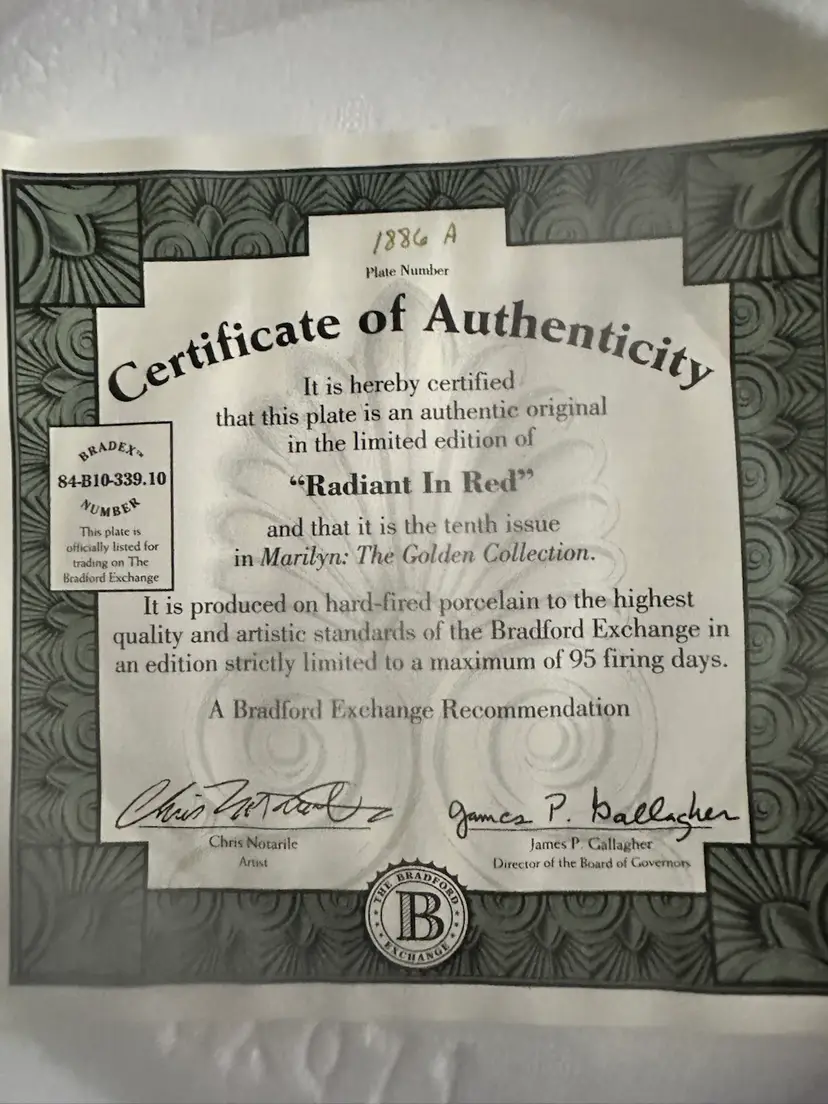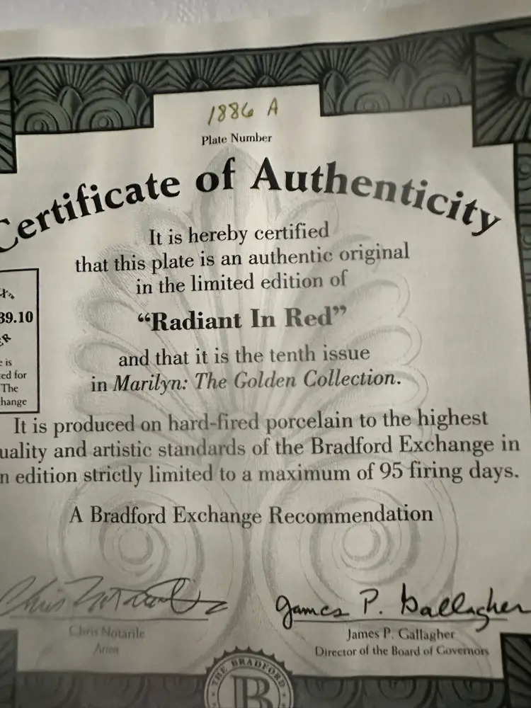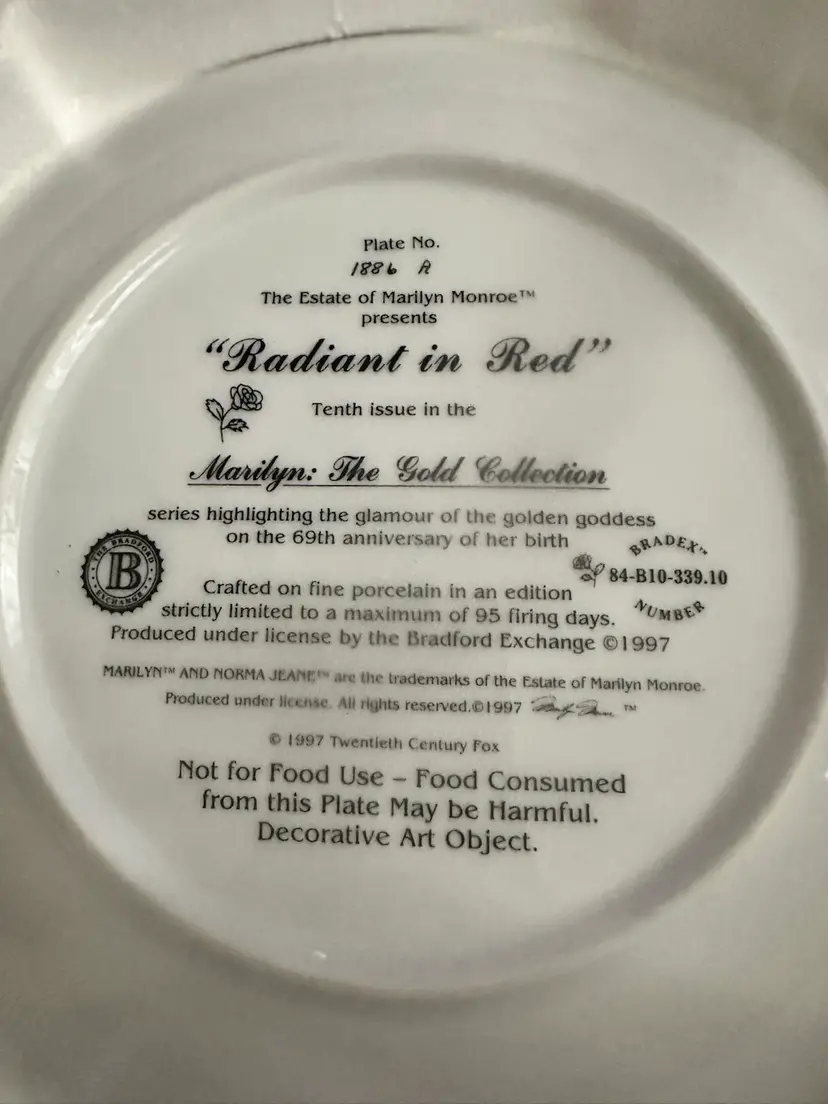 This is a Bradford Exchange commemorative plate on the 69th anniversary of Marilyn Monroe’s birth presented by her estate.