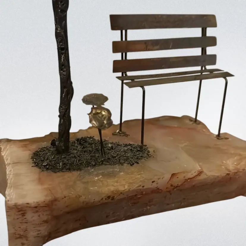 Mario Jason Mid-Century Jere Era Iron & Bronze Sculpture. 9” tall, 6.5” long, and 3.5” wide.