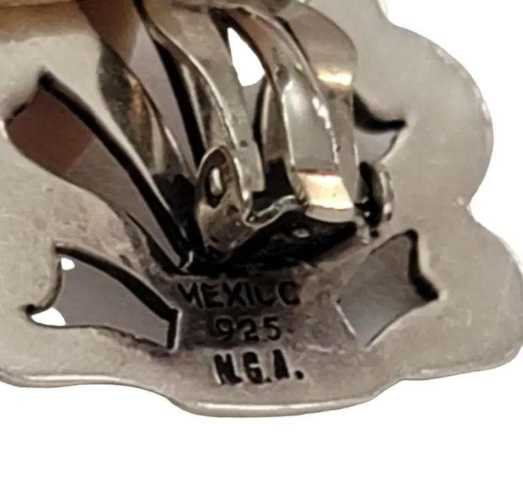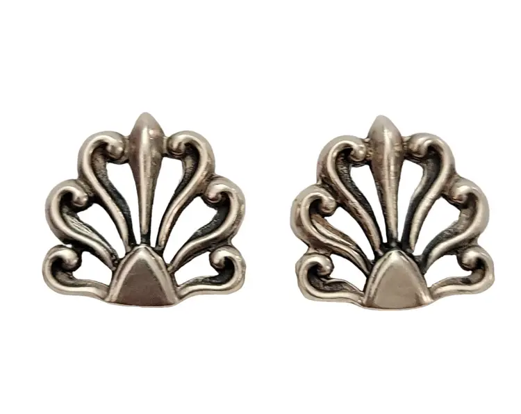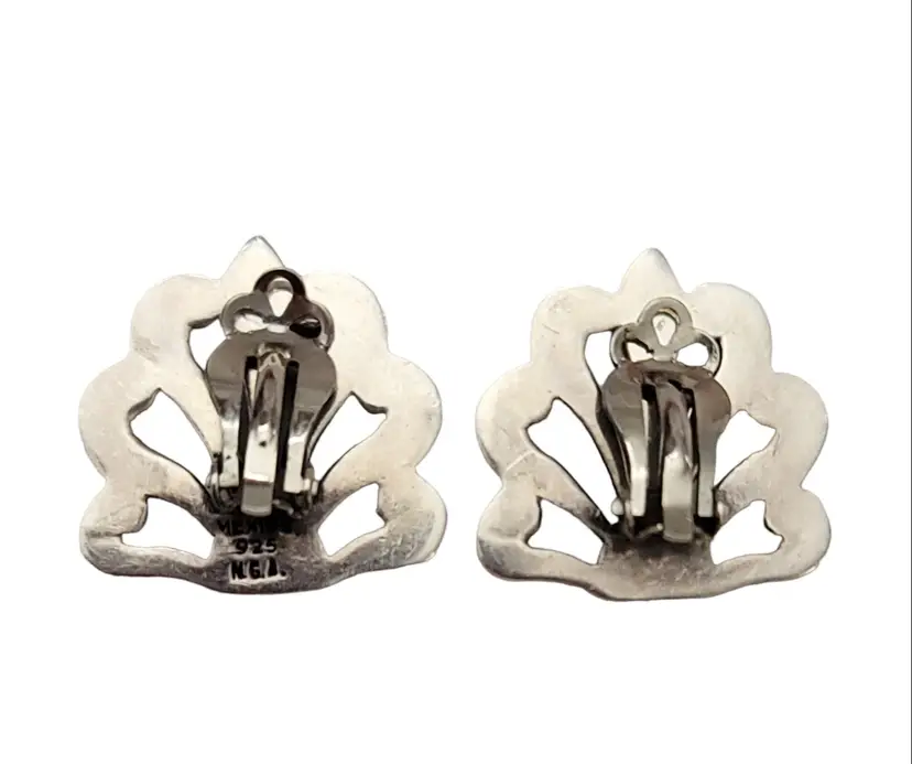 Marked Mexico 925 NGA Sterling Silver Fan Style Clip-On Earrings K168