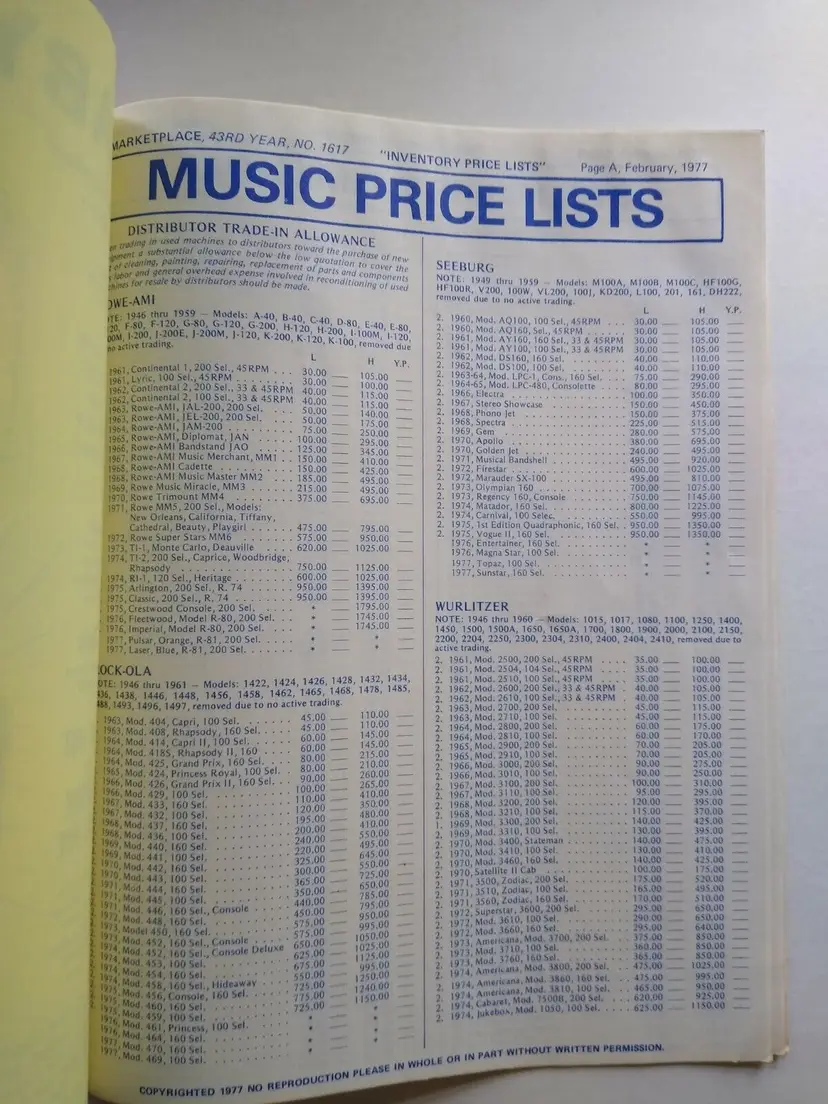 Coin-Op: Trade Magazine Modified Item: No Country/Region of Manufacture: United States Year: 1977 Brand: Marketplace