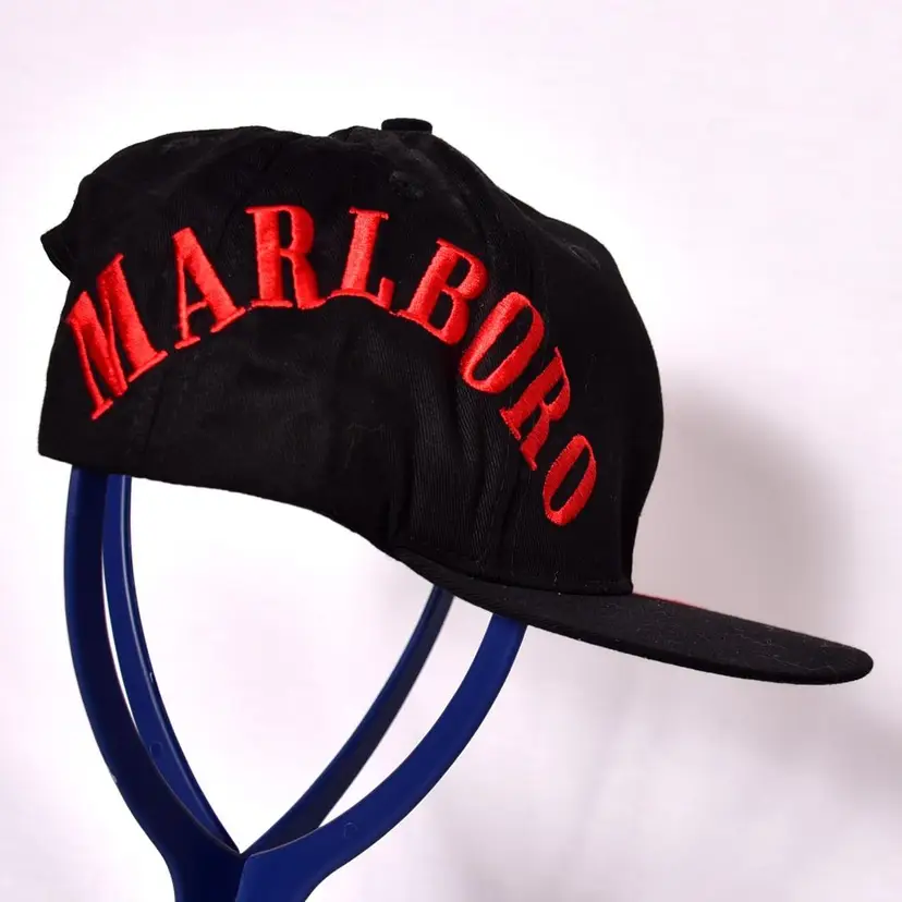 Marlboro Snapback Hat Black Tobacco Cigarettes Cap Bronco Cowboy Spell Out