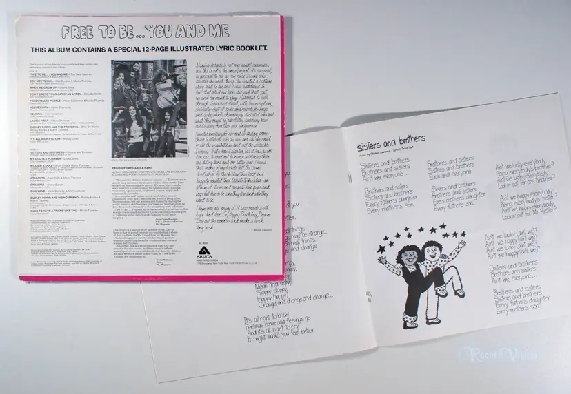 Free to Be You and Me is a children's entertainment project, conceived, created and executive-produced by actress and author Marlo Thomas. It was a record album and illustrated book first released in November 1972 featuring songs and stories sung or told by celebrities of the day (credited as "Marlo Thomas and Friends") including Alan Alda, Rosey Grier, Cicely Tyson, Carol Channing, Michael Jackson, Roberta Flack, Shirley Jones, Jack Cassidy, Mel Brooks, Shirley Jones, Harry Belafonte, and Diana Ross. An ABC television special, also created by Thomas, using poetry, songs, and sketches, followed sixteen months later in March 1974. The basic concept was to encourage individuality. A major thematic message is that anyone can achieve anything. Proceeds went to the Ms. Foundation for Women. A number of pieces from the record did not make the special, most for lack of time, although Housework was left off due to the somewhat condescending tone it lent to its description of domestic workers. The album was originally released on Bell Records in 1972 and, since 1975, has been available on Arista Records cassettes and CDs.