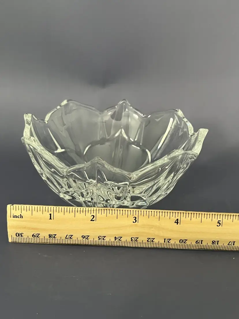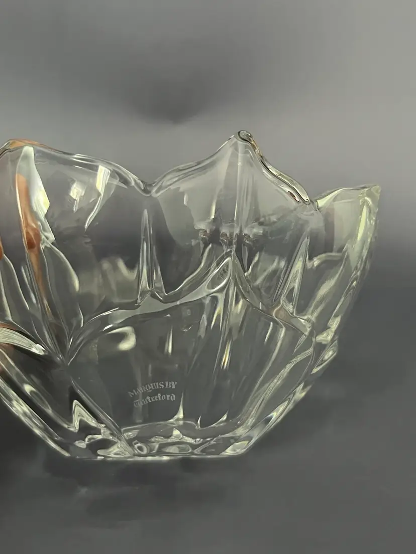 Marquis by Waterford Lead Crystal Small Rose Shaped Bowl. Marquis by Waterford is etched on the bowl. This beautiful crystal pattern was initially produced by Waterford in 1957 as part of the Floral Bowl Collection and is still in active production. It features various bowls in clear cut glass. This beauty is 2 1/4" in height x 5" in diameter