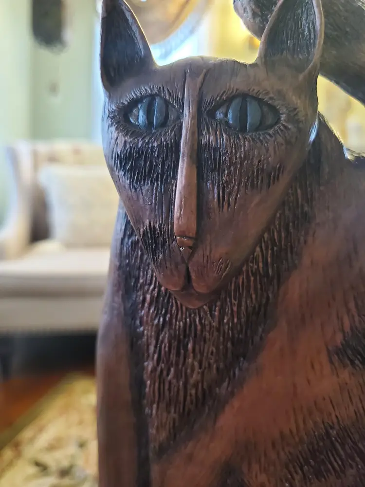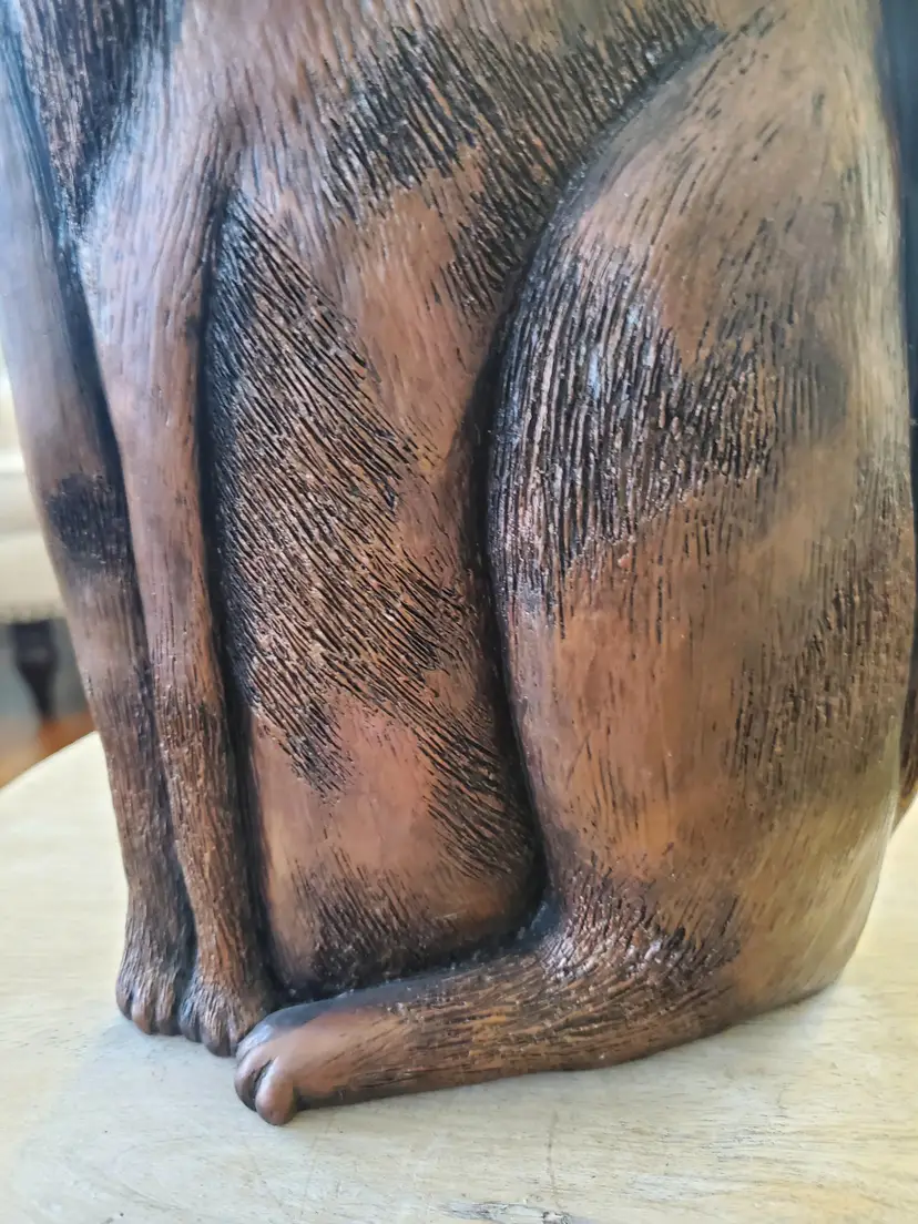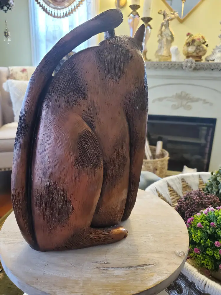 Large kitty sculpture by Marsha McCarthy. Copper colored. 12" tall by 8" wide. So expressive!