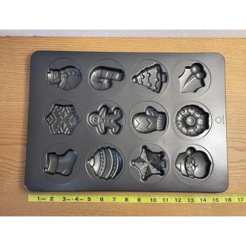 Martha Stewart Collection Christmas Mini Cake Pan Holiday 12 Separate Holes Cookie Candy Molds Multipurpose use, cakes, cookies, candy, etc.