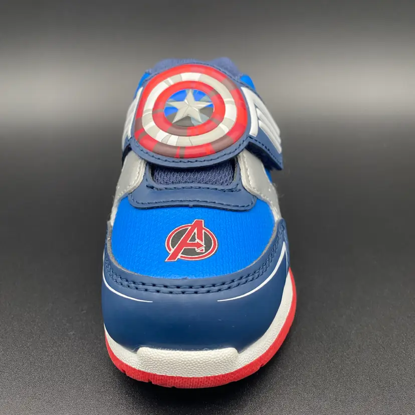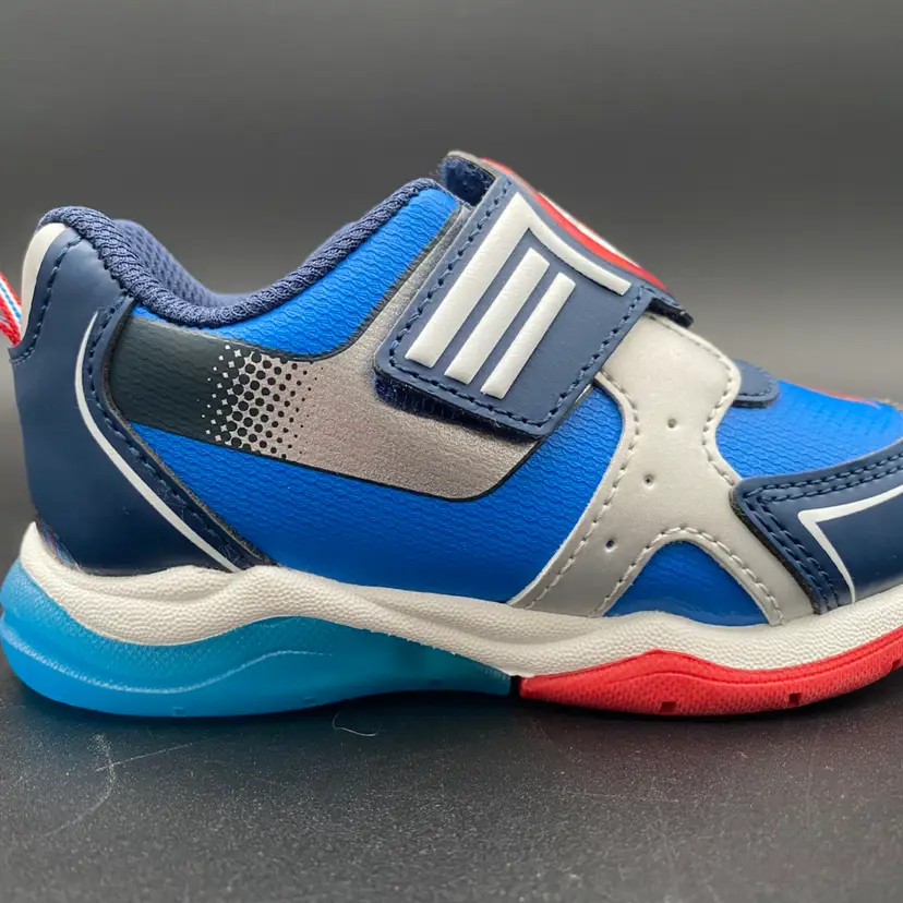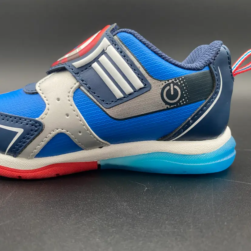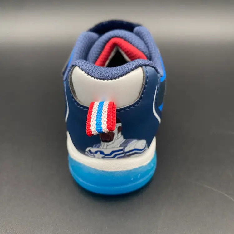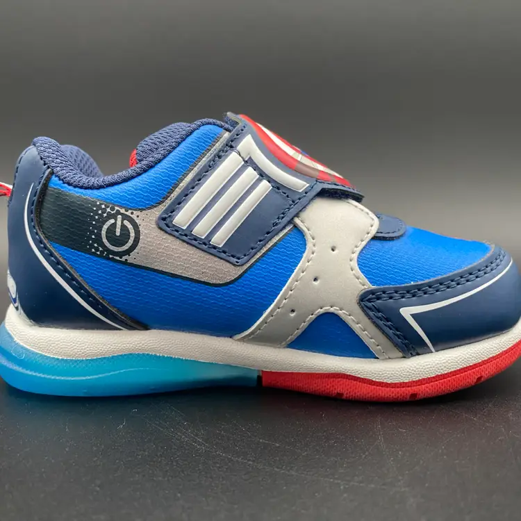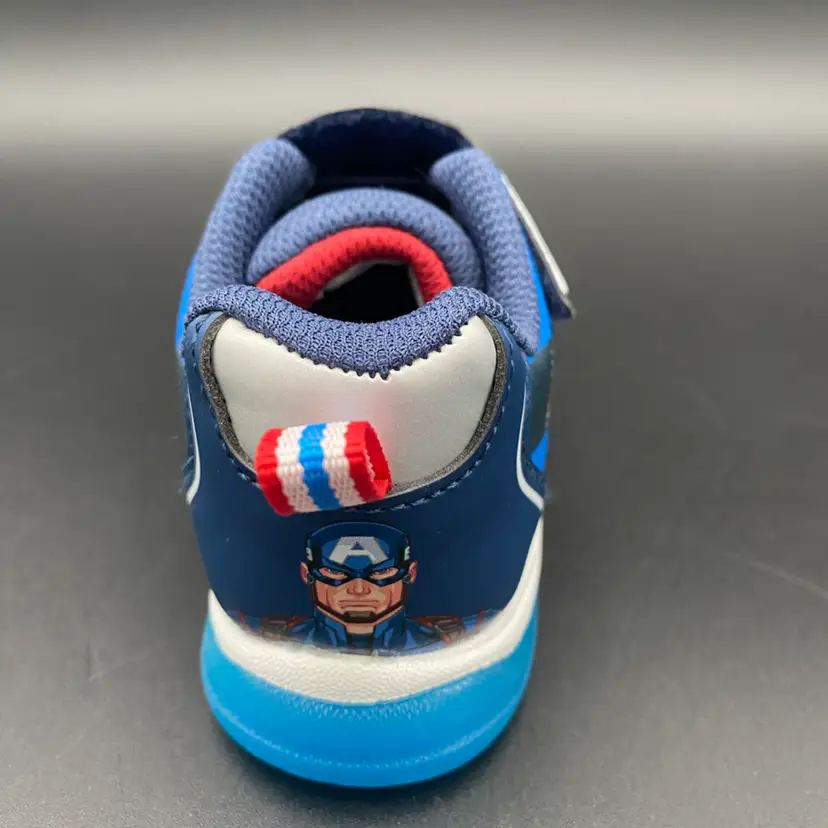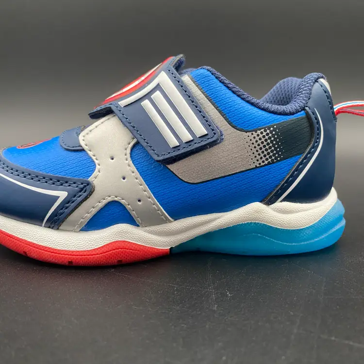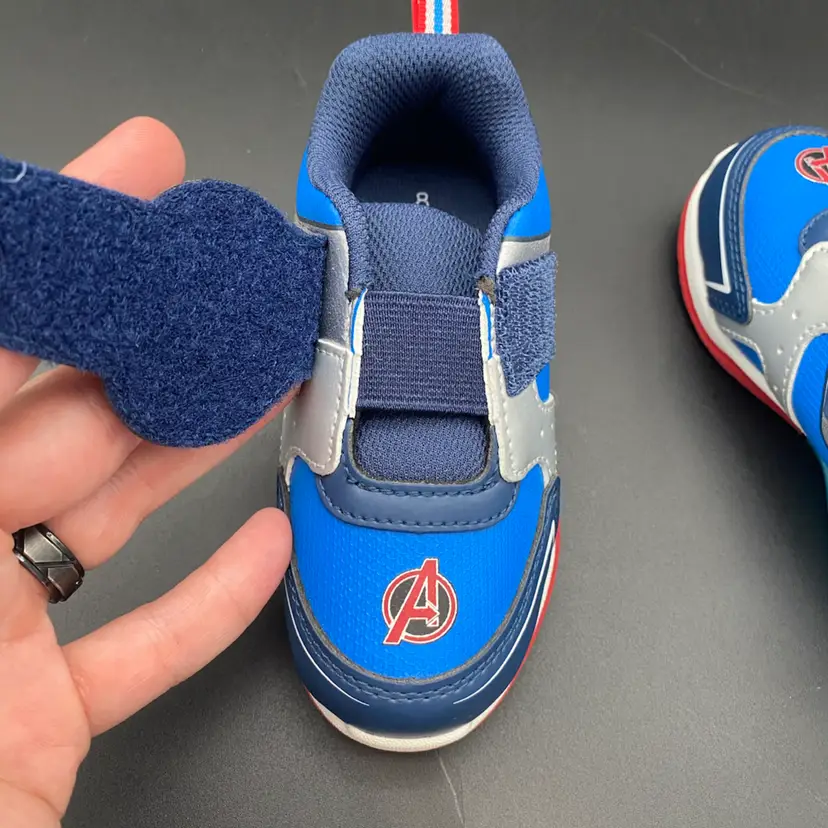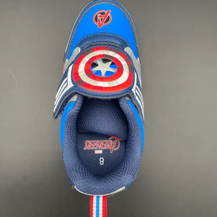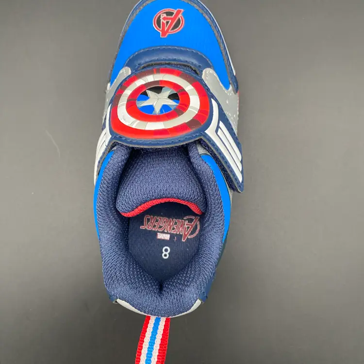 You are purchasing one pair of Toddler Boy's Size 8 Captain America Light-Up Sneaker Shoes by Marvel and their Avengers collection. These Shoes are in great condition with no stains or rips in the material. Clean bottoms with great tread. No issues with light-up functions.