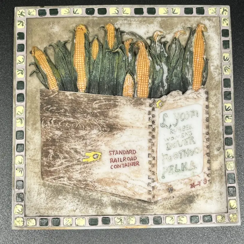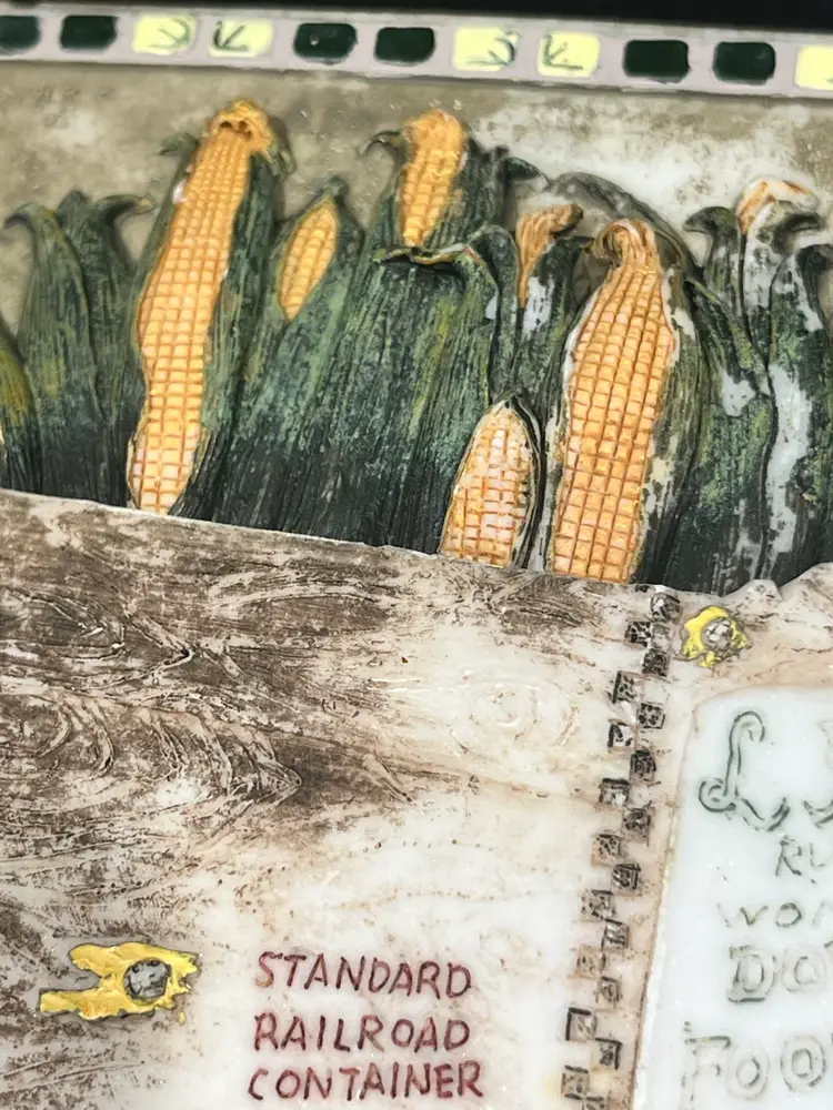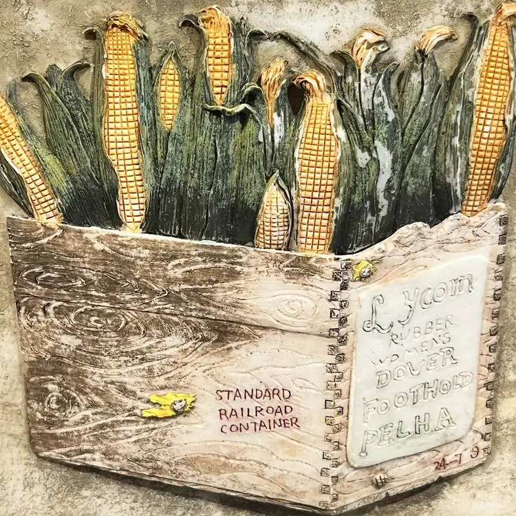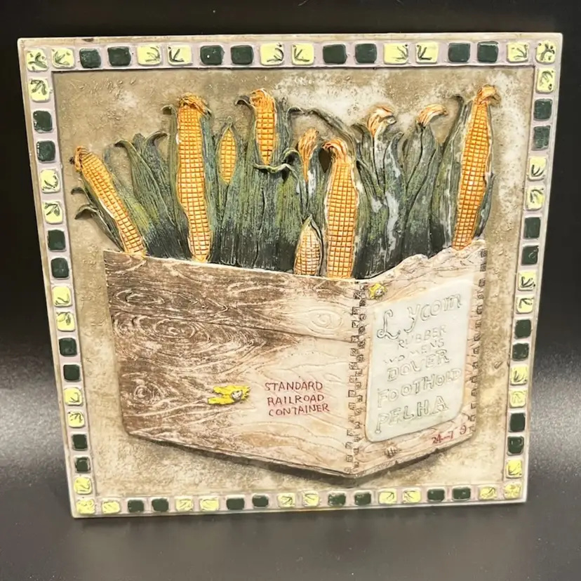 Ready to hang- vintage- corn in the farm crate. Great dimension and detail