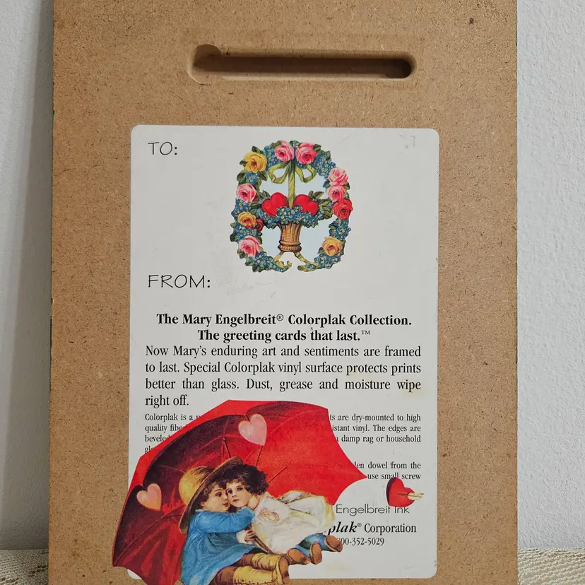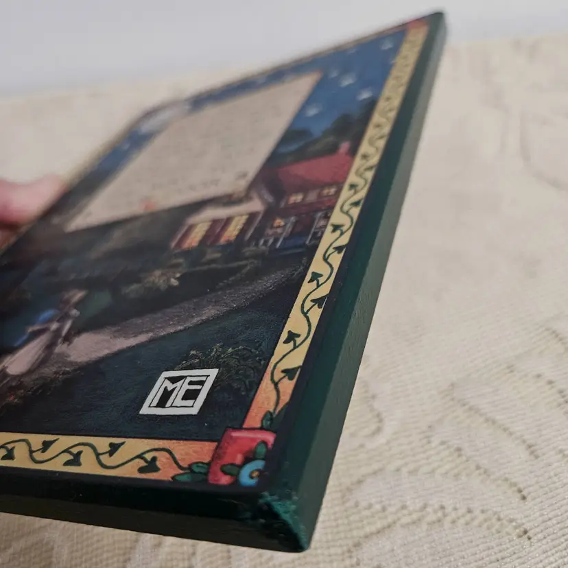Sweet wall hanging for ME fans. In very good condition. Minor scuff on bottom right edge. Valentine's stickers affixed to back that are not original to wall plaque. Measures 8.5"L x 6"W