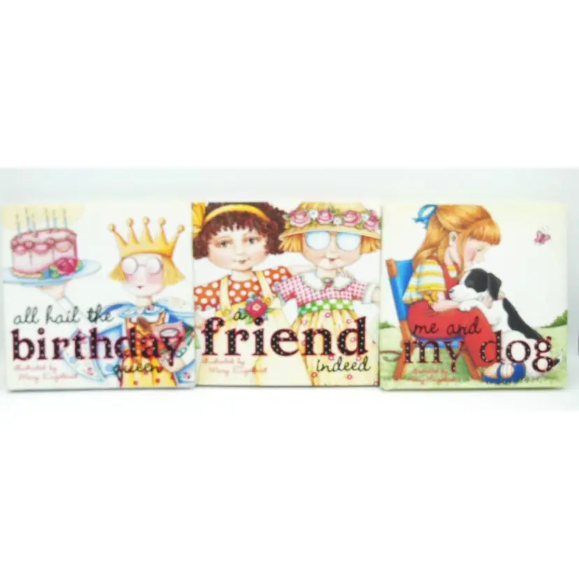 This lot of three Mary Engelbreit mini books is perfect for any book lover. The books include titles for birthdays, friends, and even a book about dogs. These books are new old stock and have never been used. The unique vintage style of these books will add character to any collection. They are hardcover and in excellent new/unused condition. Don't miss out on the chance to own these delightful books.
