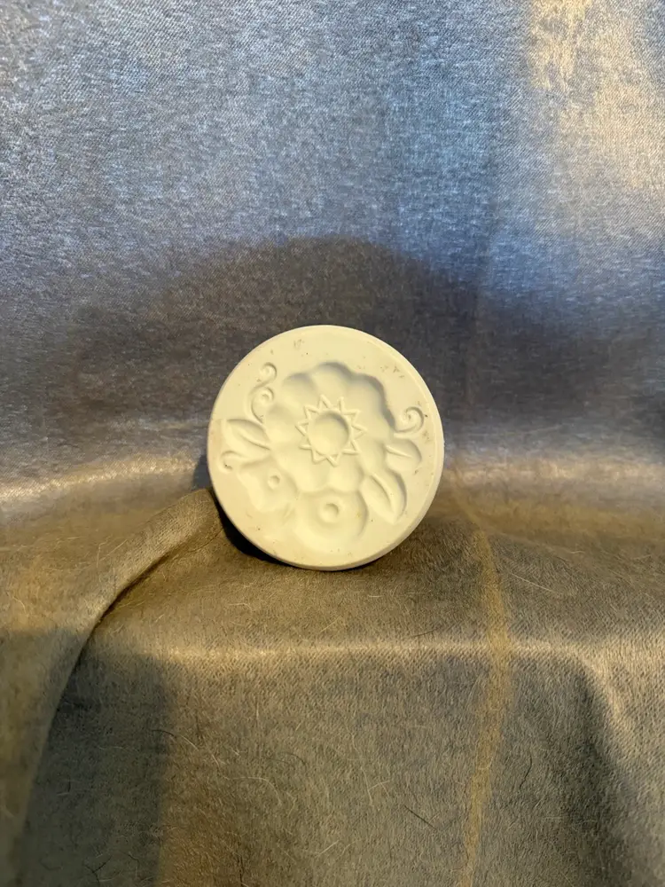 1999 Mary Engelbreit Cookie Press Mold Stamp Floral Imprint 1999. Ceramic .Vintage. No Box. Condition is Used.