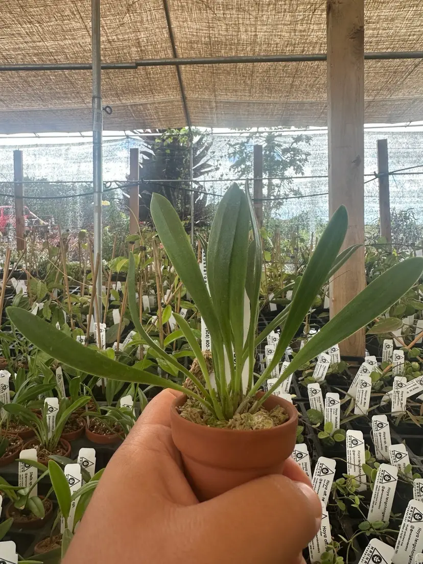 Starter plants are actively growing in a sphagnum mix with orchid bark and perlite and are kept moist with daily waterings. They are potted in terra cotta which wicks moisture out of the medium, keeping the plant cooler than ambient conditions (70-85 degrees) through evaporative cooling.