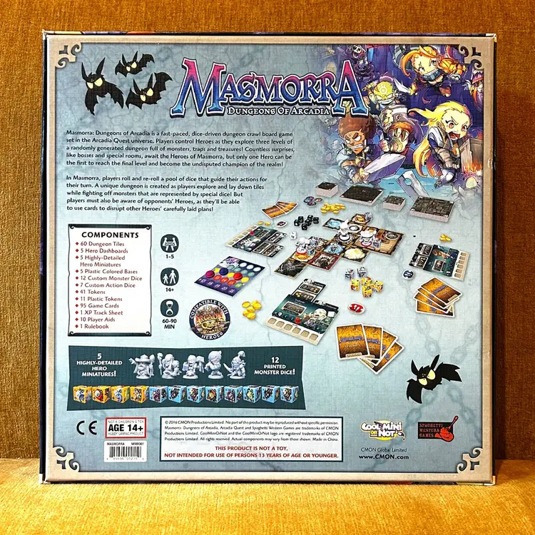 Masmorra: Dungeons of Arcadia is a fast-paced, dice-driven dungeon crawl board game set in the Arcadia Quest universe where players control Heroes that explore three levels of a dungeon filled with monsters, traps and treasure! Bosses, special rooms and countless surprises await the Heroes, but only one can be the first to reach the final level and become the undisputed champion of the Realm!