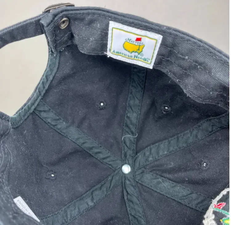 Celebrate a legendary year in golf with this 2008 Masters Tournament black adjustable baseball cap – a vintage gem for fans of the game and collectors alike. Featuring the iconic Masters logo embroidered on the front, this hat commemorates one of the sport’s most revered events, held in the heart of Augusta, Georgia.