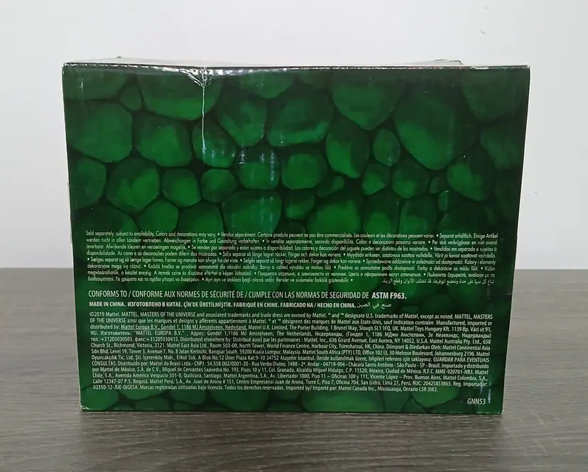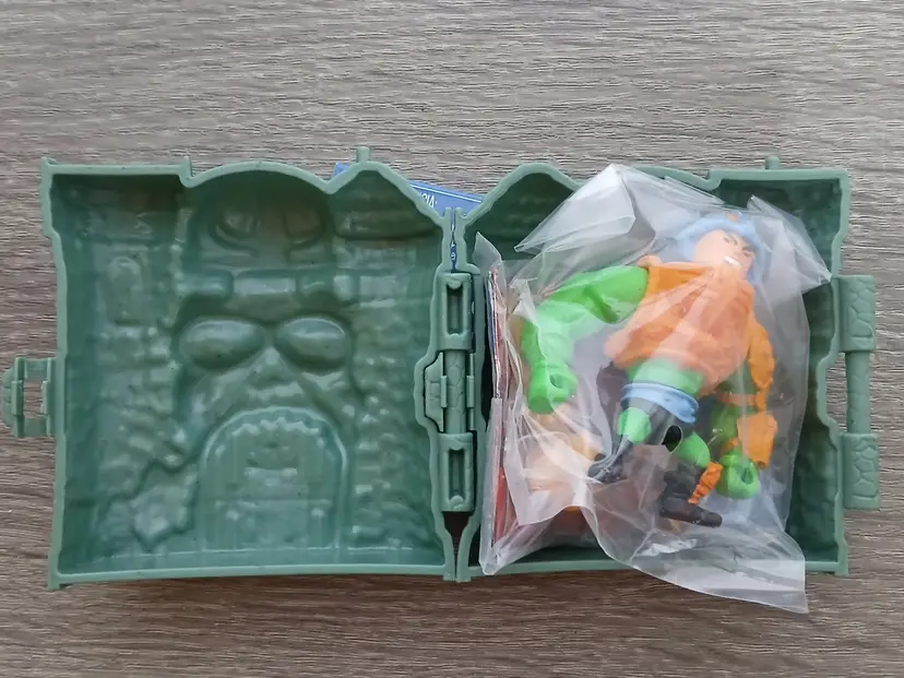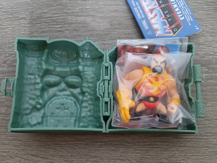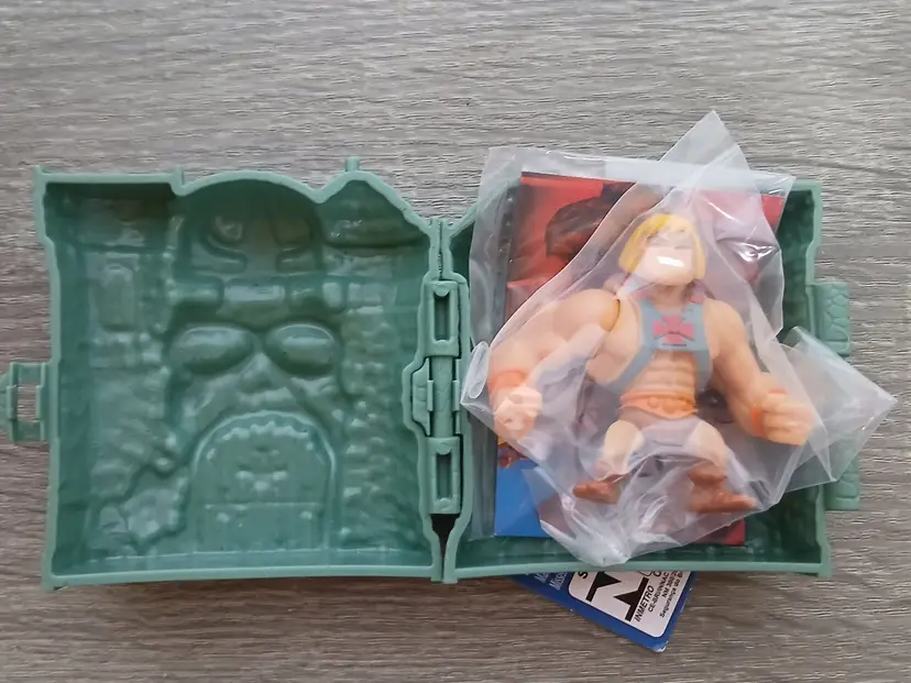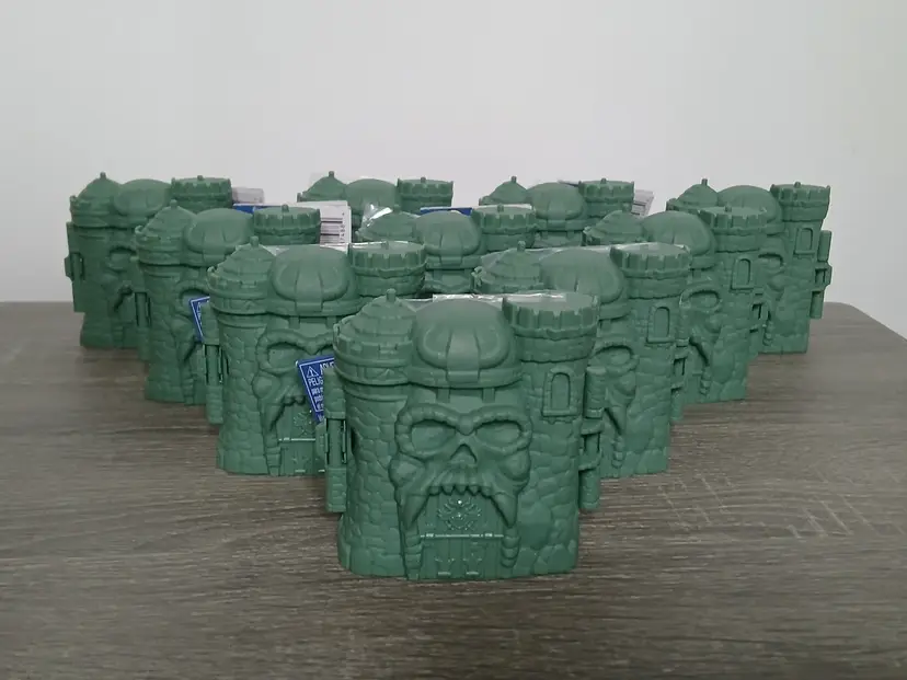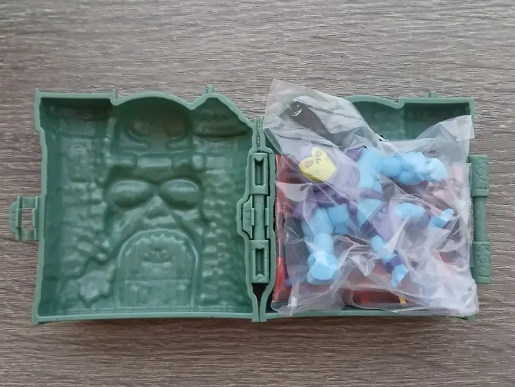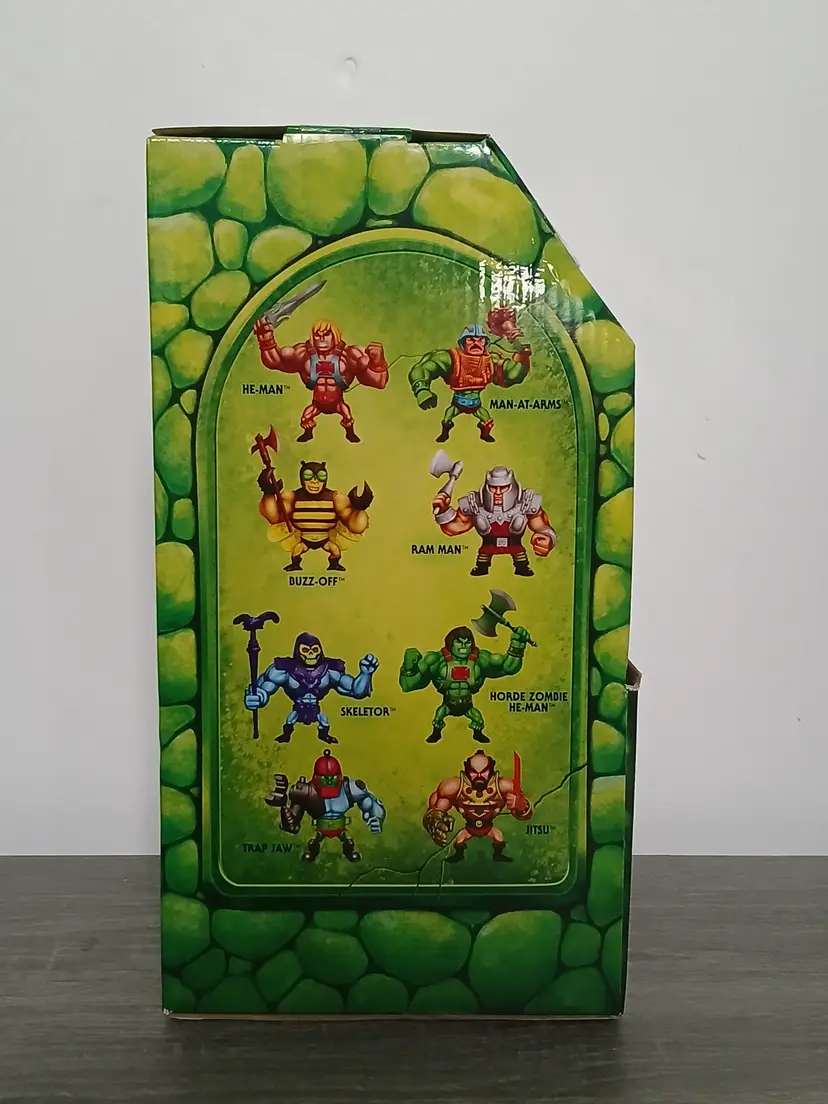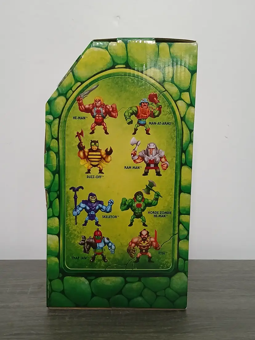 The Masters Of The Universe Eternia Minis Wave 1 action figures by Mattel. Total of 10 new action figures in their hardshell cases with the original cardboard Grayskull Castle store display box. "Drawbridge” opens at the front of the box displaying the cases inside. Amazing artwork on the box and in very good condition. A rare find! Figures as shown in the pictures, some doubles. Missing Horde Zombie He-Man to complete the set.