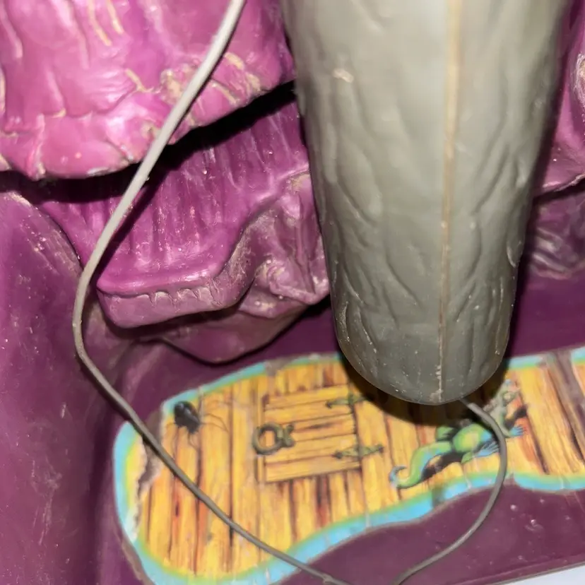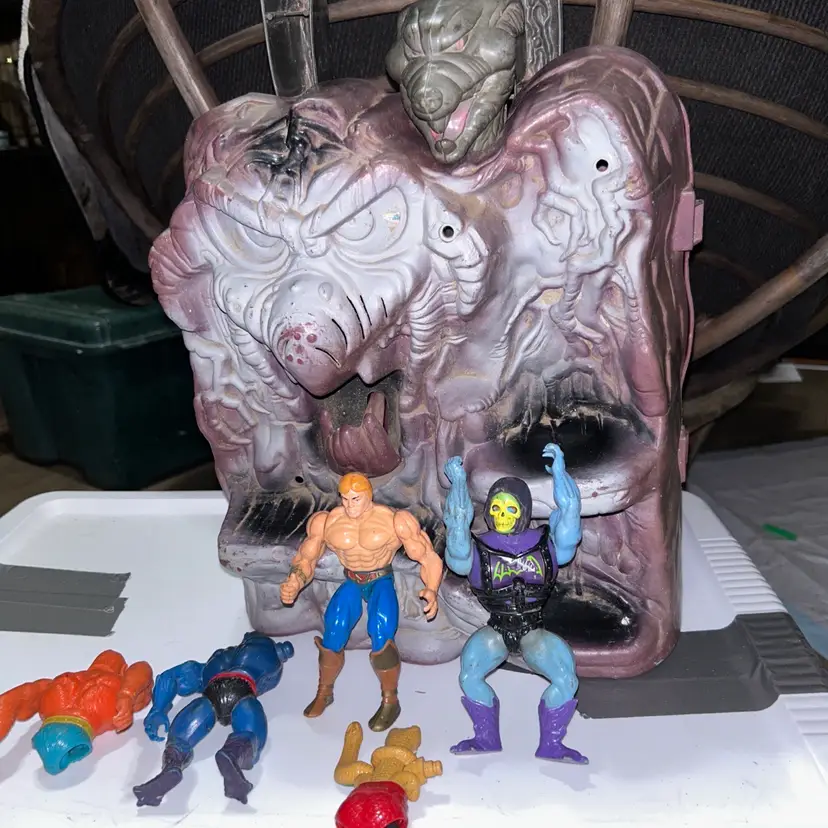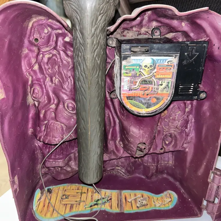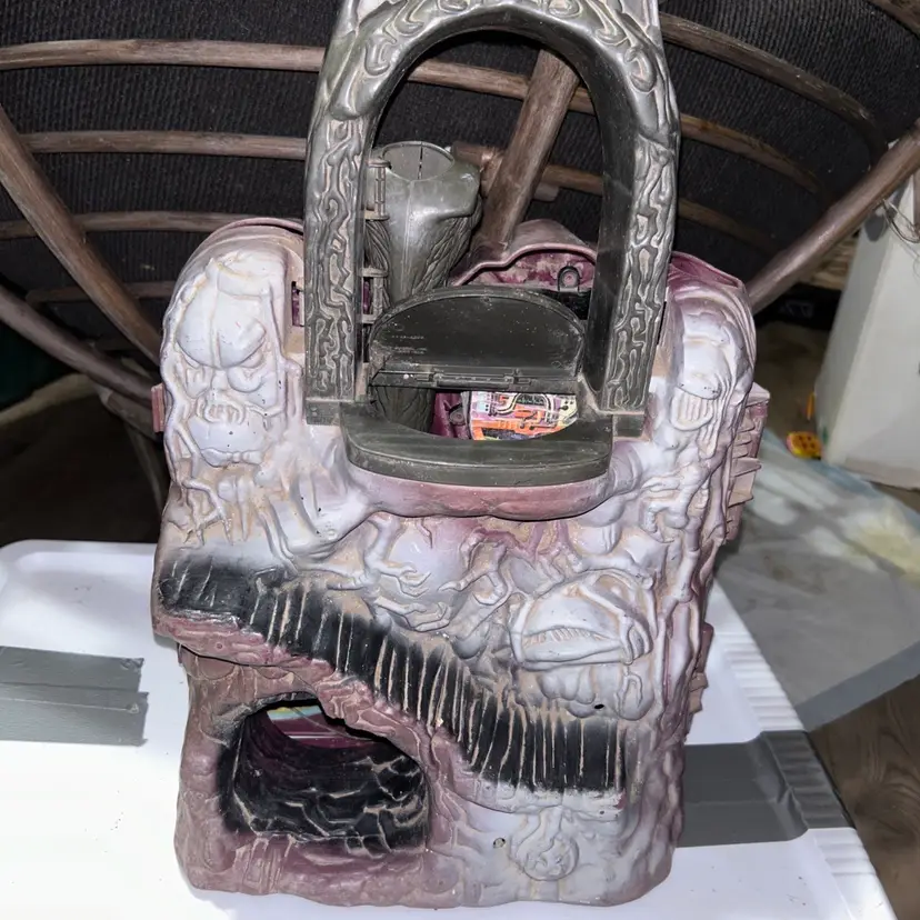 This is for parts or repair. Snake mountain is incomplete and damaged. Only has what is pictured. In used condition has been sitting for a long time. It has water damage, battery corrosion in the the battery compartment. Contacts are rusty and one side broke. Needs to be cleaned up. Also includes a few figures. Some are just for parts.