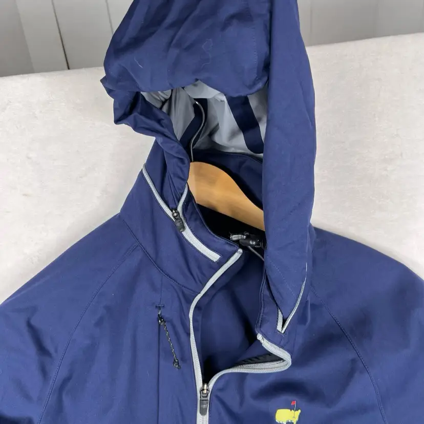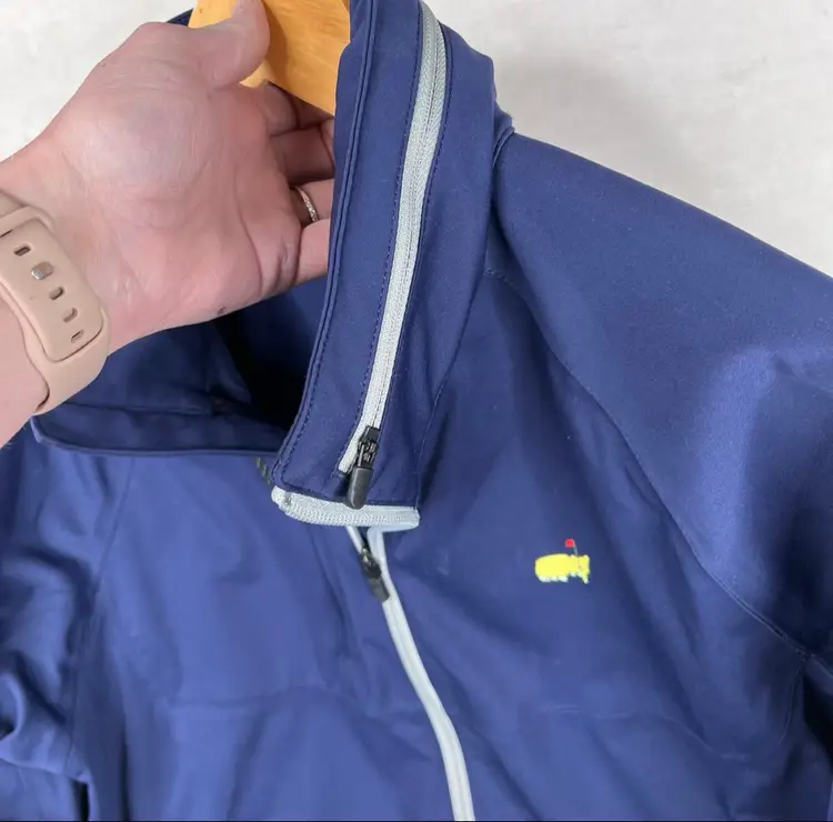 Elevate your golf game or casual outings with this Master's Tech Blue Full Zip Hooded Jacket, designed for men in size small. Made from a lightweight, breathable fabric, this jacket offers both comfort and performance, making it ideal for outdoor activities, especially on the golf course. The full zip design allows for easy on-and-off, while the hood provides extra coverage and protection when the weather turns. The sleek blue color and modern fit give it a stylish look that pairs effortlessly with your activewear or casual wardrobe. Gently worn and in excellent condition, this versatile jacket is a must-have for anyone who values both function and fashion.