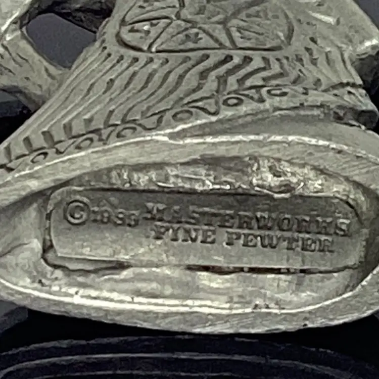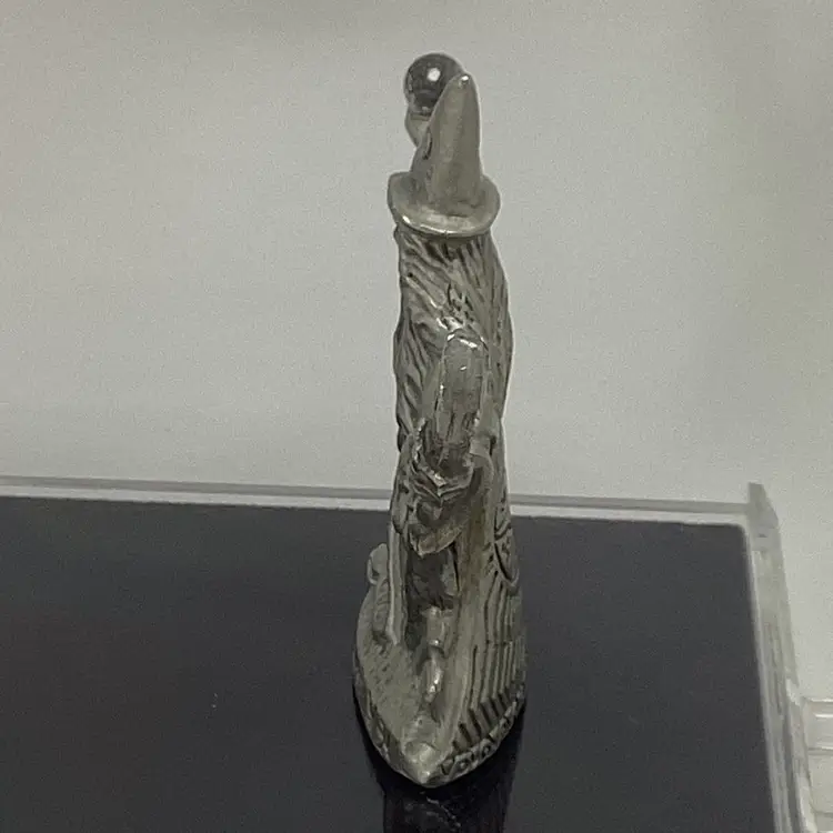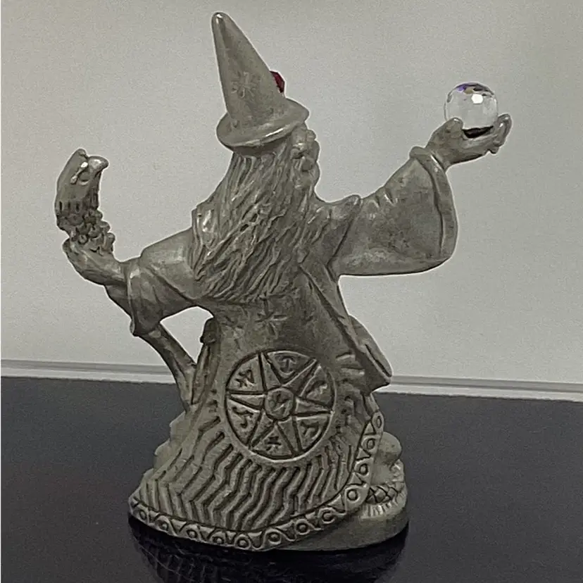 Wizard with crystal, staff and red & blue crystals. It is in good pre-owned condition (see photos). Measures: 2.75” L x .75” W x 3.25” H, weighs 5.4 oz.